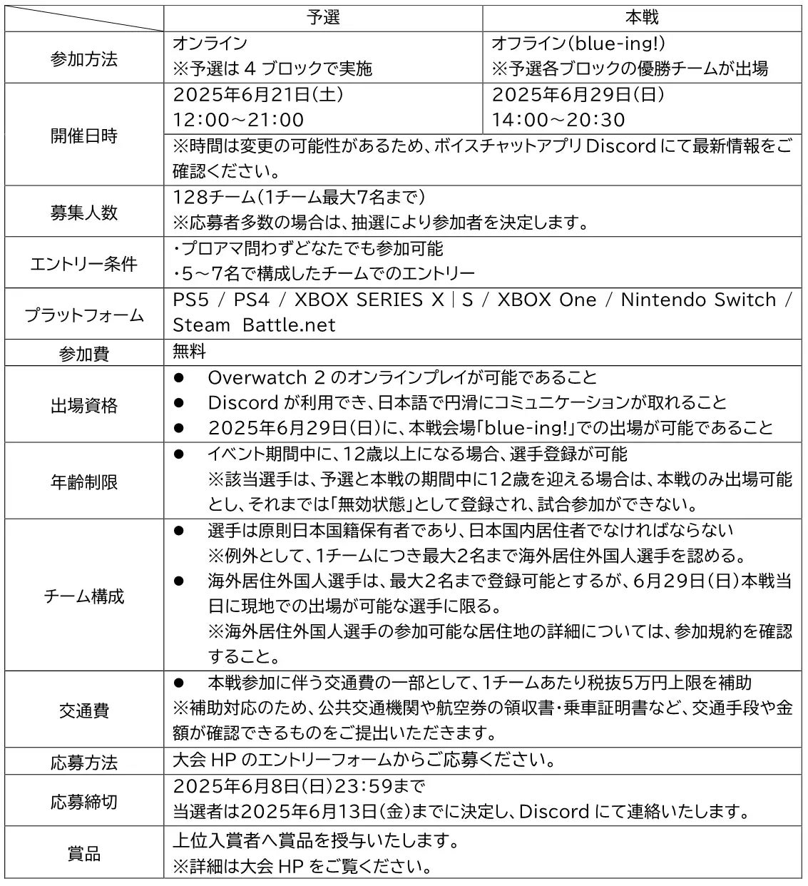 ※本イベントの参加規約はOverwatch 2の公式大会の規約に準拠しています。