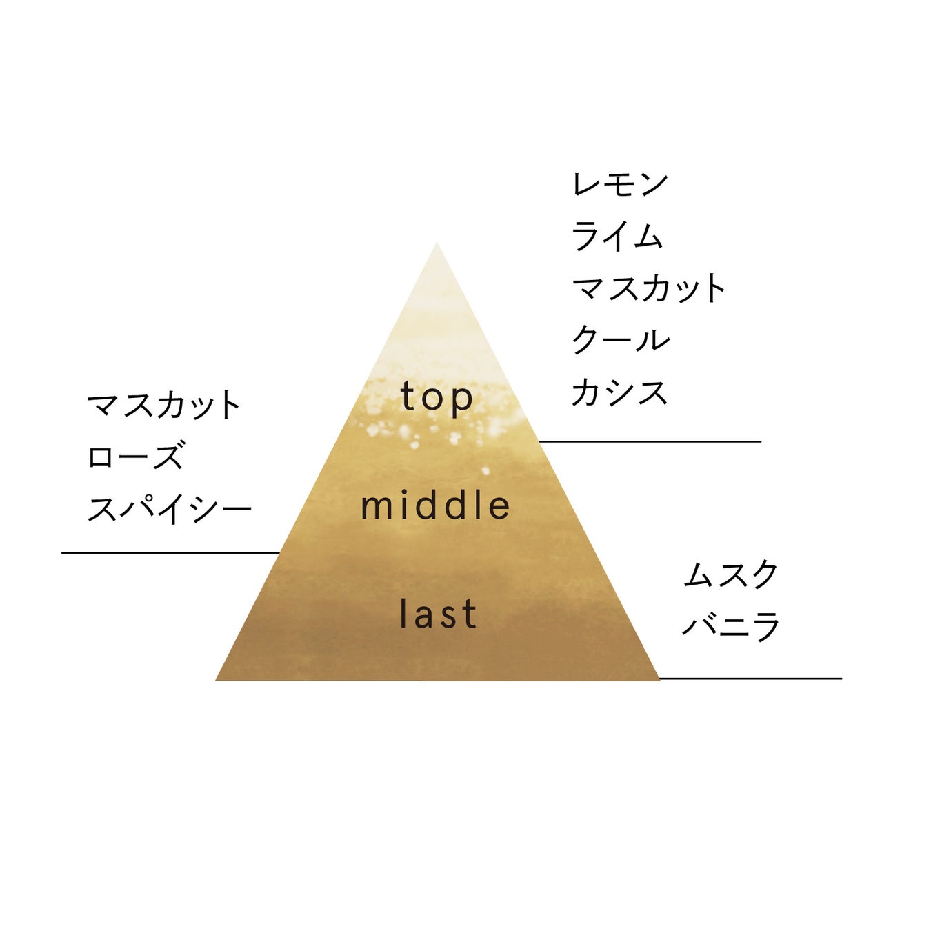 足首や腰などに付けて軽めに香らせたり、手首やデコルテにつけてしっかりと香らせたりと、シーンやお好みでお楽しみください。