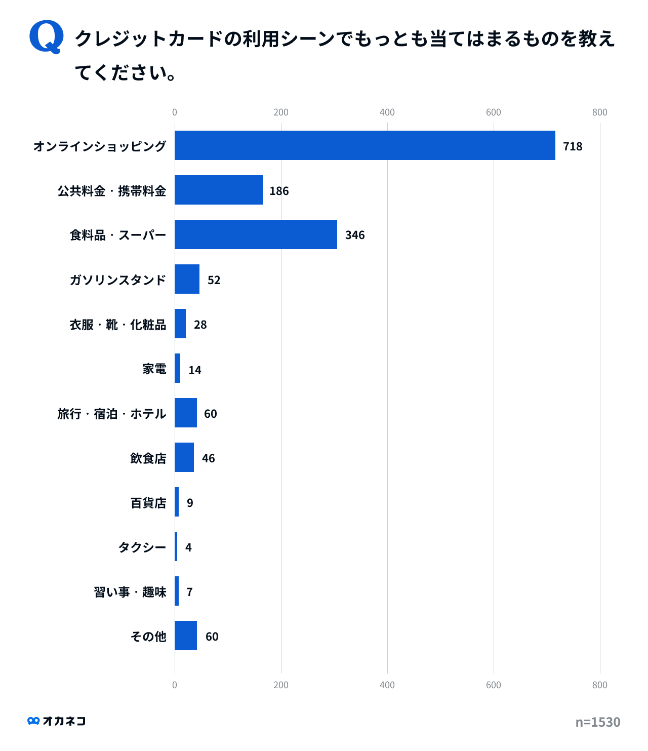 クレジットカードのもっとも多い利用シーンは「オンラインショッピング」
