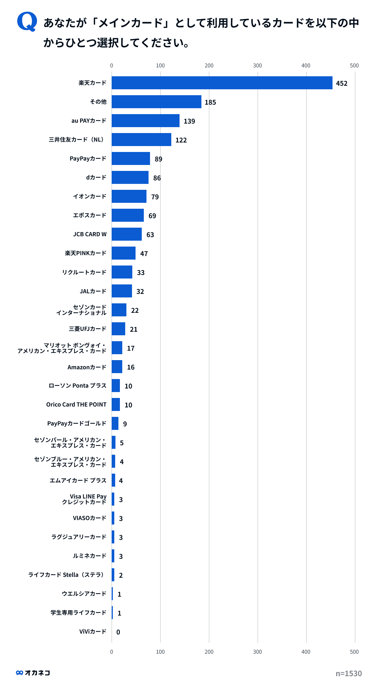 所持しているクレジットカード 1位は「楽天カード」がもっとも多く、