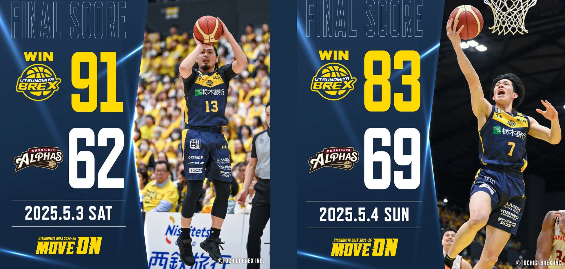 宇都宮ブレックスは、2025年5月3日(土)と5月4日(日)に日環アリーナ栃木で越谷アルファーズと対戦しました。