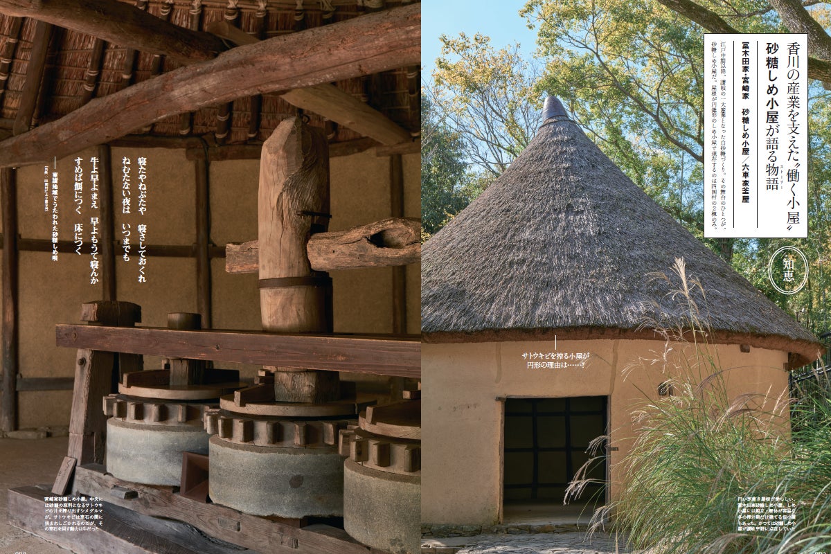アートの語源をさかのぼると人の「手」だと言います。いま香川県に点在するアートの数々、それを制作したアーティストたちは風土と共存する暮らしへと眼差しを向けていました。20世紀はじめの香川にはサトウキビ畑が広がり、そこには円錐形の屋根をもつ砂糖しめ小屋があったと画家の猪熊弦一郎は語っています。そんな当時の風景をそのままに、人の手でつくり上げた暮らし、まさにアートの源流が四国村ミウゼアムにはあります。江戸から大正時代にかけての人の営みを感じる建物が教えてくれることとは?