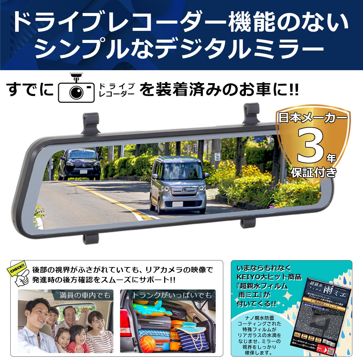 KEIYO新製品 どんな車にも取り付け簡単!シンプルなデジタルバックミラー!高画質、タッチパネル!3年保証付き!本日より発売開始!!