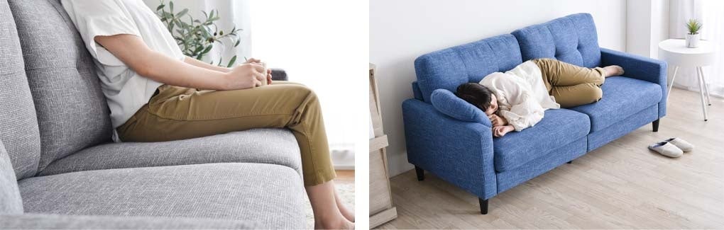 一般的な3人掛けのソファの奥行きは約48cm~51cmのものが多い中、本製品は数センチの違いにこだわり奥行きを54cmにすることで、深くゆったりとお座りいただくことが可能となりました。