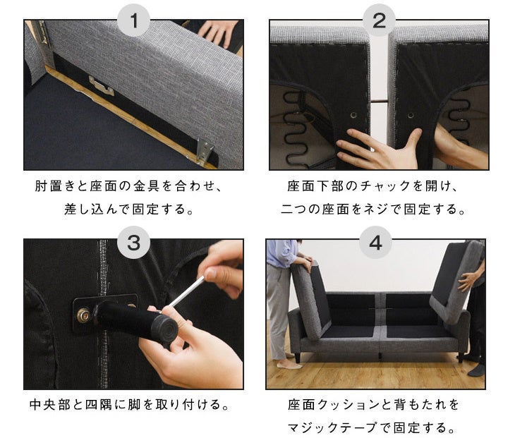 『#VS series 3P』は組み立て式のソファとなり、お客様自身の手で組み立てる必要がありますが、2人で約20分程度の所要時間で簡単に組み立てることができる設計になっております。