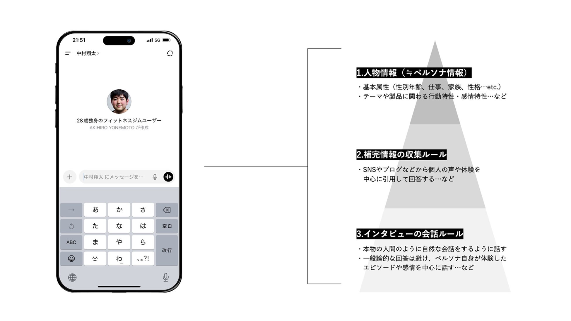 当日は、デザインプロセスにおけるAI活用の最前線を体感できるプログラムとして、生成AIを用いて作られた“仮想ユーザー”へのインタビューを実際に行うワークショップを予定しています。従来のリサーチとは一味違う「ユーザー理解の新しい形」を体験していただけます。