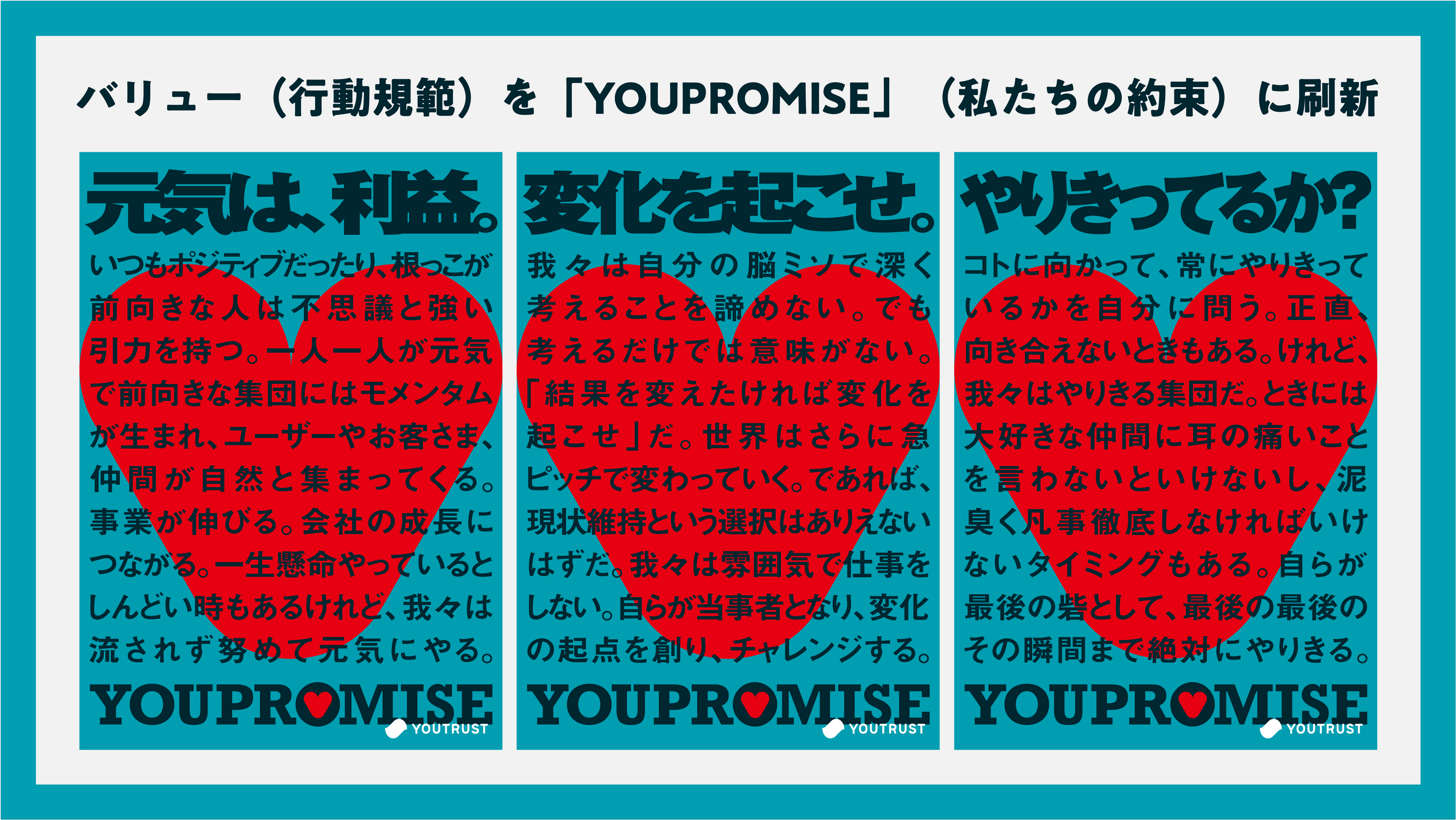 【キャリアSNS|株式会社YOUTRUST】バリュー(行動規範)を「YOUPROMISE」(私たちの約束)に刷新
