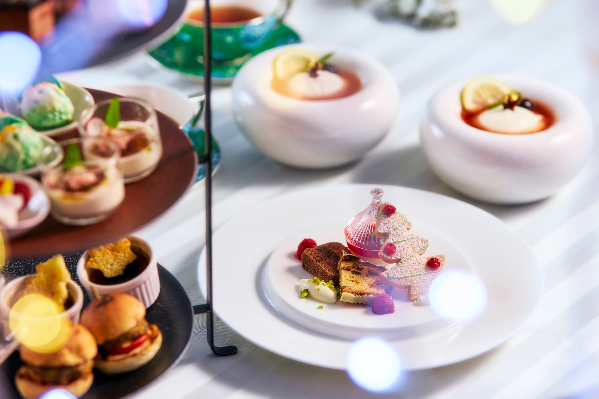 この季節限定のアフタヌーンティーには、ブッシュドノエルやシュトーレンなど、クリスマスならではの伝統的なスイーツも登場。雪のように白く美しいスイーツが、ホワイト・クリスマスの雰囲気を一層引き立てます。