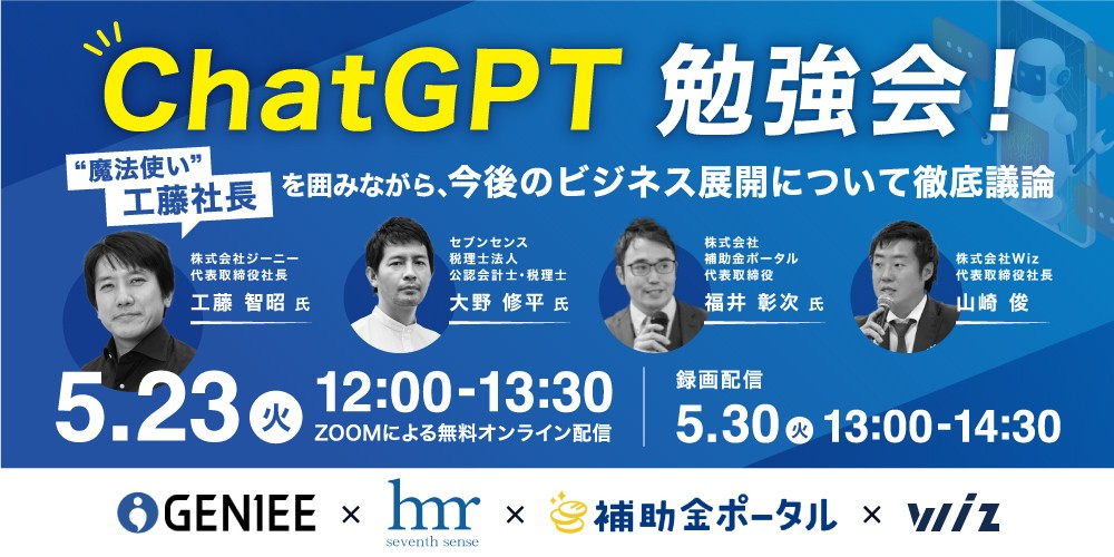 【ウェビナー名】 ChatGPT勉強会! 魔法使い⼯藤社⻑を囲みながら、今後のビジネス展開について徹底議論