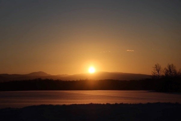 【坂東さん】:僕のお気に入りの1枚は今年の冬、地元の北海道に帰省したタイミングで、朝スキーに友達みんなと向かっている最中、パッと横を見たら、ご来光が出ていて。うわーと思って、動いている車の中から撮った写真ですね。