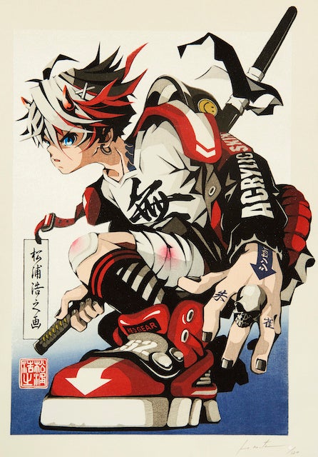 松浦の作品には多彩なキャラクターが次々と登場し、浮世絵にも通じる躍動感溢れる大胆な構図で琳派のような装飾的な日本画の様式が取り入れられることが特徴の一つだ。