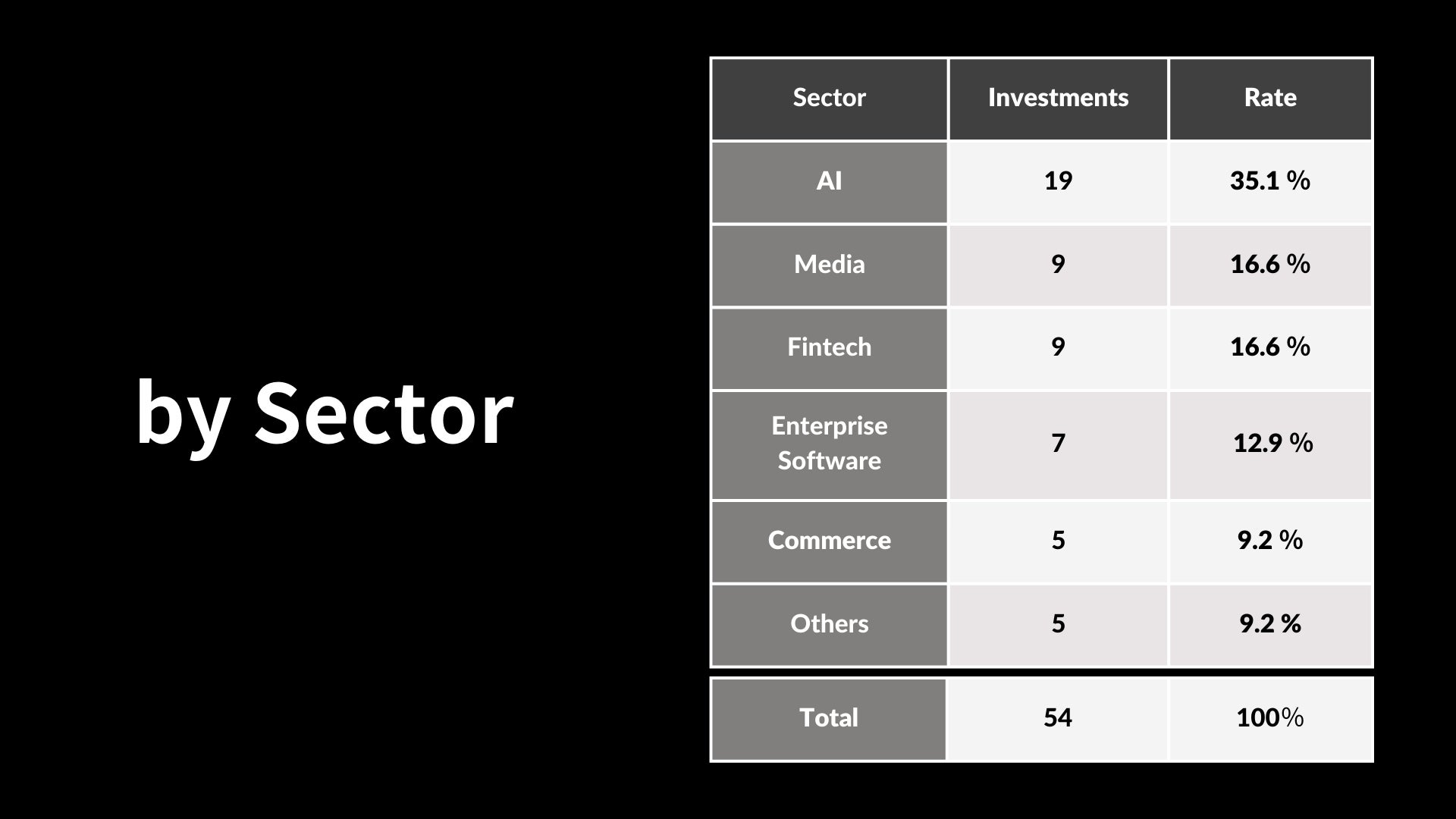 また、「Media」「Fintech」「Commerce」といった注力領域に加えて、「Enterprise Software」への投資も積極的に実施しました。