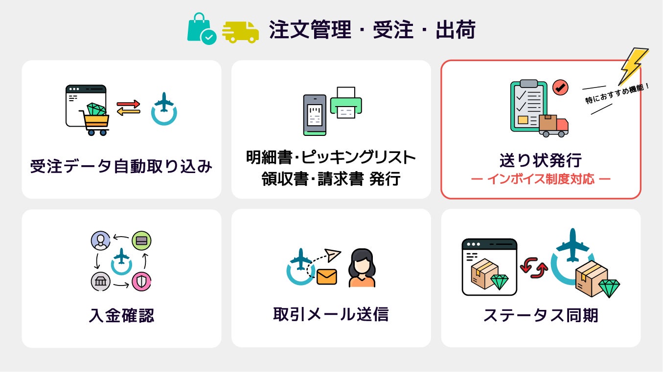海外販売にも使える共通の商品画像付き明細書を発行できるので、効率化を図ることができます。ピッキングリスト(店舗控え)には、任意の商品情報も出力できます。