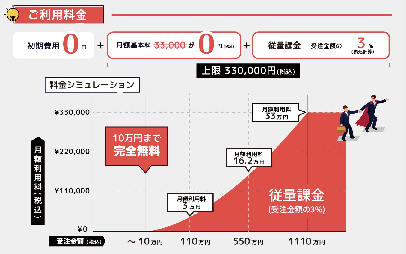 ※月額基本料と受注課金を合算し330,000円(税込)を超えた場合、BASIC版に移行して頂くとお得になります。