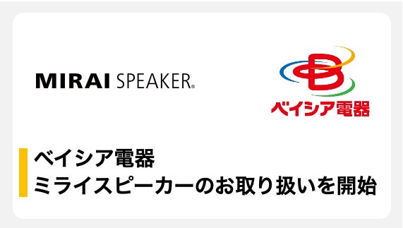 この度、「ミライスピーカー」シリーズが関東を中心に展開する家電量販店「ベイシア電器」の16店舗にて新たに取り扱い開始となりました。