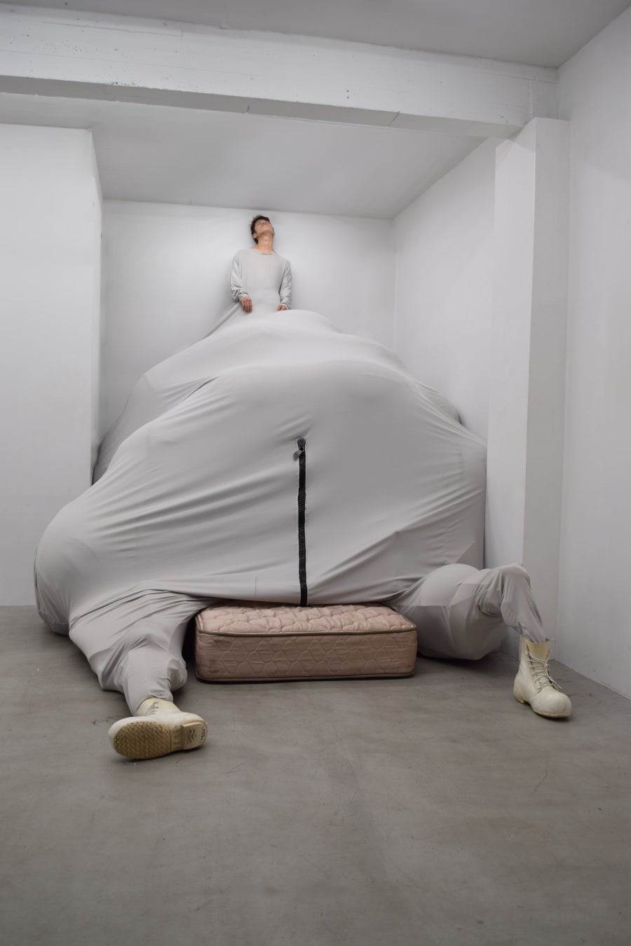 三好は「身体の拡張」や、「身体を他者と共有すること」といった概念に向き合い、その思考をパフォーマンスやソフトスカルプチャーとして物理空間に具現化するプロセスを通じて、表現活動を展開してきました。