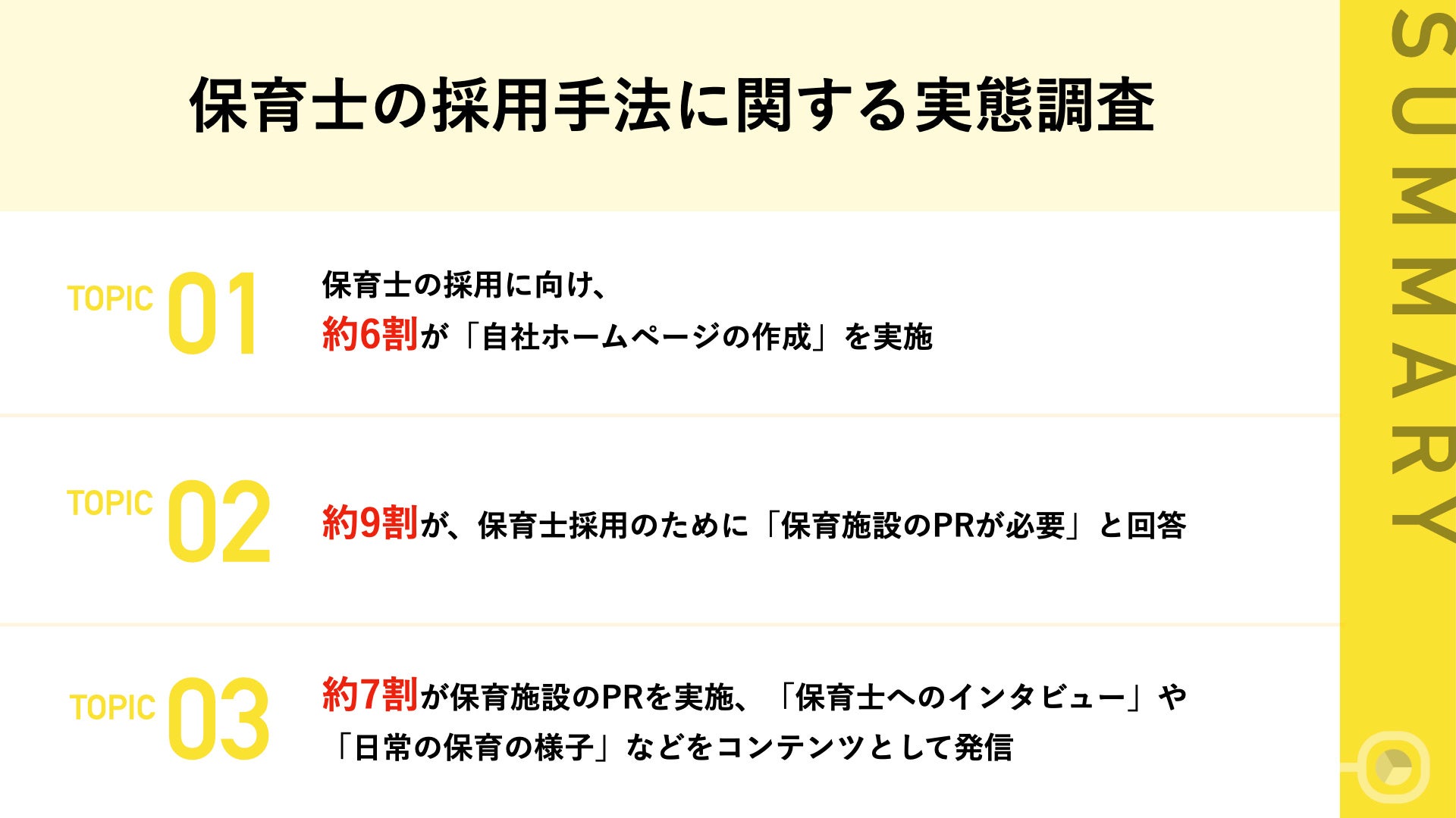- 保育士の採用に向け、約6割が「自社ホームページの作成」を実施