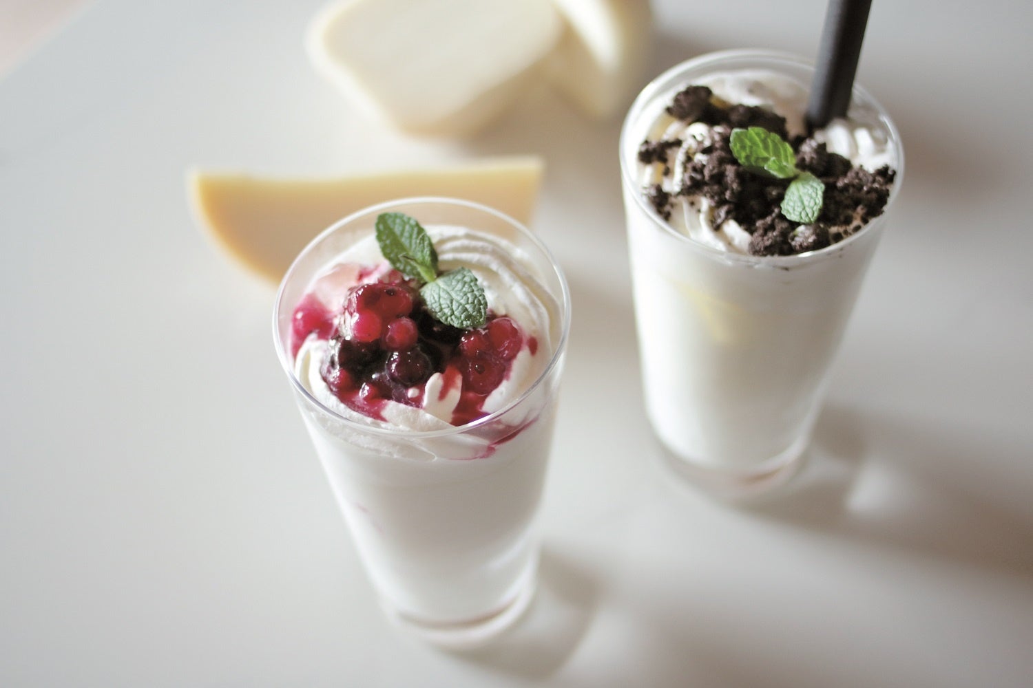 濃厚でなめらかな“飲むチーズケーキ”です。チーズケーキとヨーグルトを合わせたほどよい甘さで、カフェタイムにもぴったり。果実の酸味ですっきりとした味わいのベリーと、サクサク食感が楽しいココアクリームクッキーの2種類からお選びいただけます。(提供時間は14:00~です。)