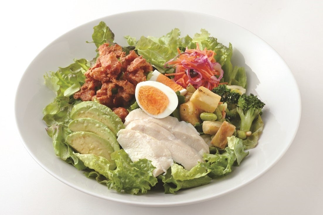 サラダチキンなどのたんぱく質を合わせた、ヘルシーながらも食べごたえのある一品です。