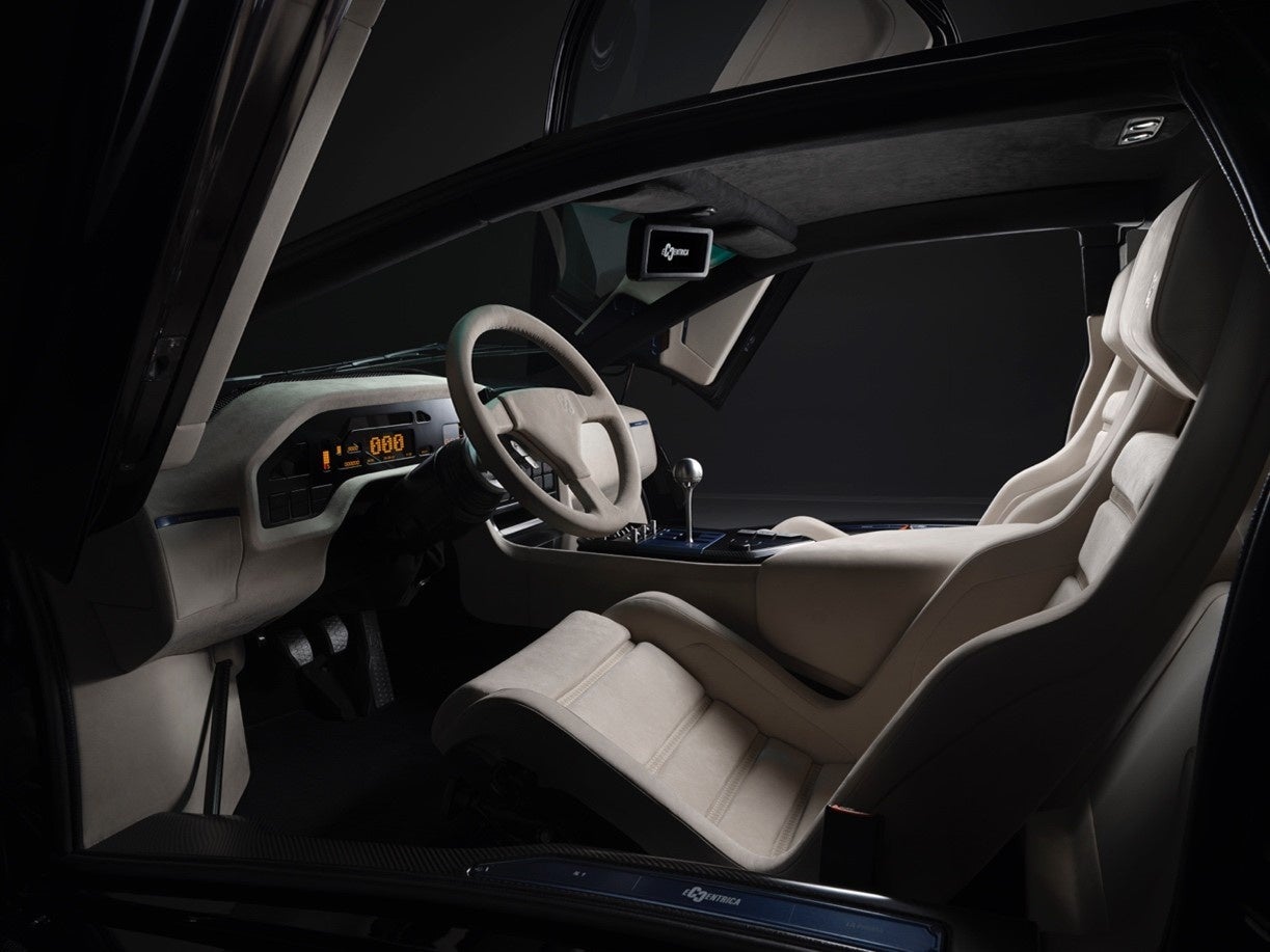 Eccentrica(エキセントリカ)は、サンマリノを拠点とするレストモッドメーカーであり、伝説的なランボルギーニ・ディアブロを現代的に解釈した「エキセントリカ V12」を「The Quail」で世界初公開しました。この限定生産車は、ディアブロのクラシックな美学と最先端技術を融合させ、新開発の強力な60°自然吸気V12エンジンを初めて披露しました。アイスカラーのALCANTARA®で覆われたシートは、包み込むようなラインと水平線で分かれたスクエア形状のクッションデザインで、90年代を彷彿させます。エンボス加工されたロゴが際立つこのシートには、2つの交差したCの文字が繰り返し装飾ラインを形成しています。また、シートのサイドパネル、天井、ステアリングホイールもALCANTARA®で作られており、コーナリング時のグリップ力と通気性を確保しながら、シートに時代を超えた上品さを演出しています。