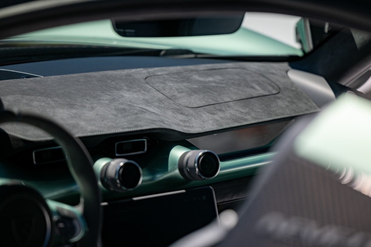 世界初公開に続き、ヒスパノ・スイザは「カルメン・セグレラ」をザ・クエイルで披露しました。この電動ハイパーカーは、大胆なデザインとスポーティなキャラクターを備え、シート中央部にパーフォレーションが施されたALCANTARA®を採用。ドアパネル、ステアリングホイール、ダッシュボードにもブラックALCANTARA®が使用され、排他的かつ高品質な雰囲気を際立たせています。