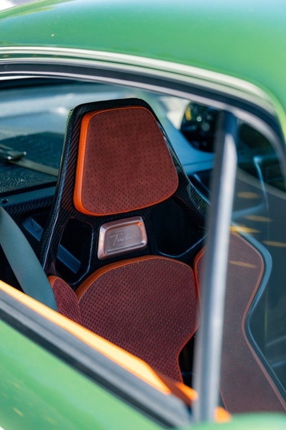 GWRモデルは、黒いALCANTARA®にレーザー加工されたパターンを施し、ジェネレーション2シートおよびダッシュボード下部に固体の金色の裏地を使用しました。同じ技術がターボにも使用され、赤いALCANTARA®にカスタムデザインされたレーザー加工のパターンが緑の裏地とともに、ジェネレーション3シートおよびダッシュボード下部にも施されています。
