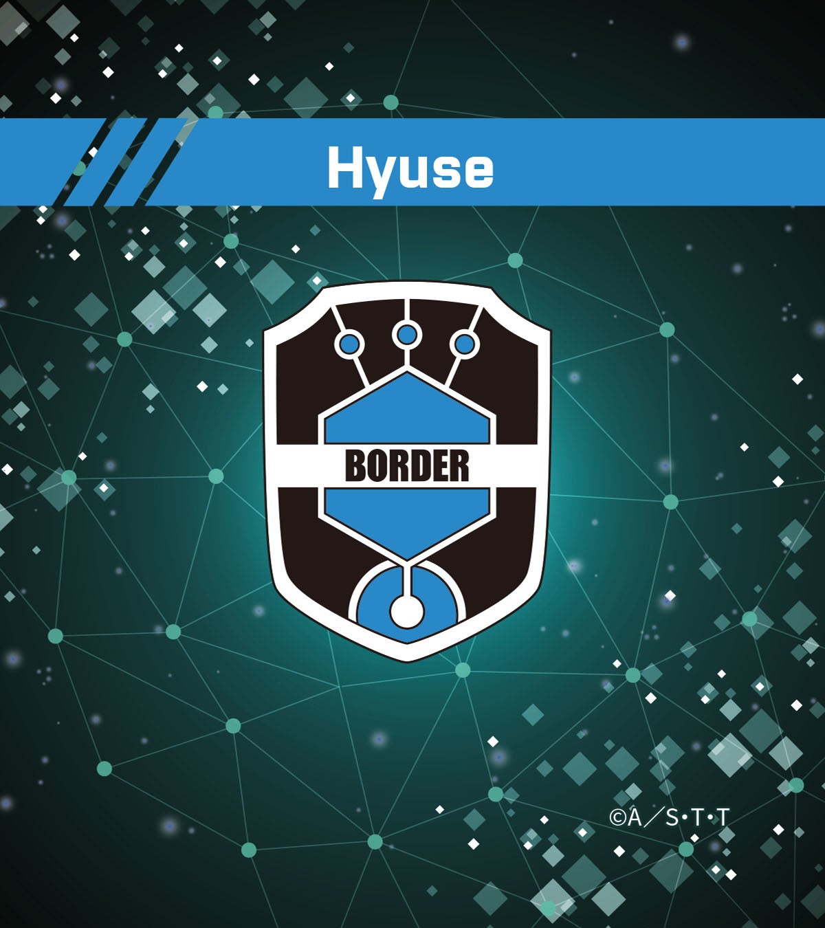 トリオンキューブモチーフの、立方体の水晶がサイドで輝きます。玉狛第2の隊服をイメージした、ブルーのアパタイトをアクセントに。ヒュースが着ていたパーカーのマークを、揺れるチャームにかたどりました。