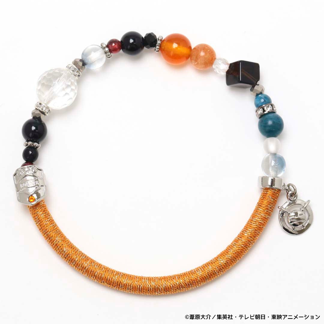 空閑遊真のエンブレムから、橙を基調にまとめたブレスレットです。「嘘を見抜く」サイドエフェクトを持つ遊真の瞳を、赤く光るガーネットで表現しました。