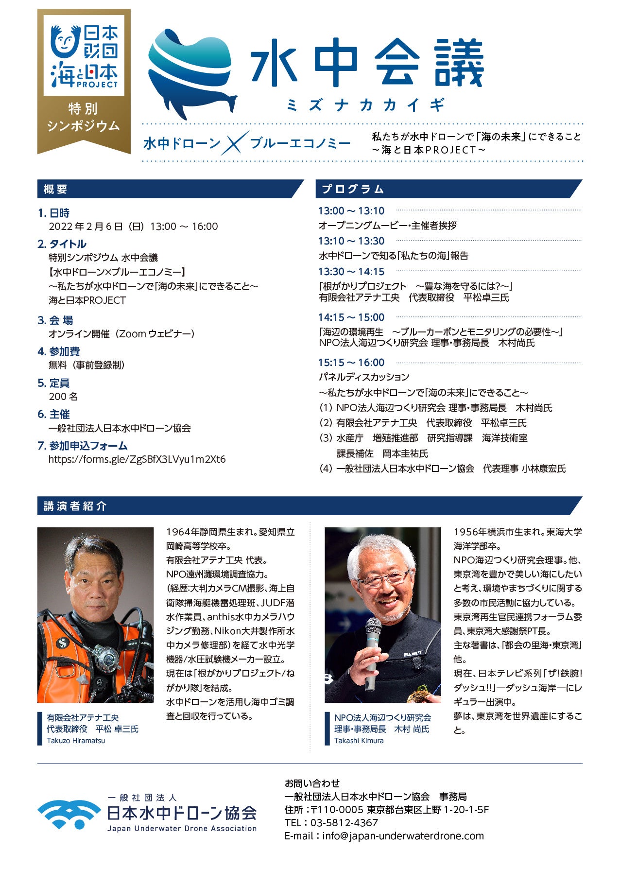 【参加費無料】2/6 水中会議「水中ドローン×ブルーエコノミー」特別シンポジウム開催