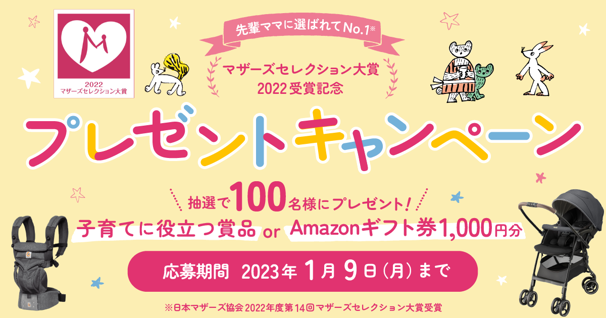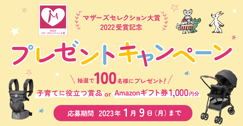 子育てに役立つプレゼント賞品に外れてしまっても、Amazonギフト券1,000円分が当たるチャンス!