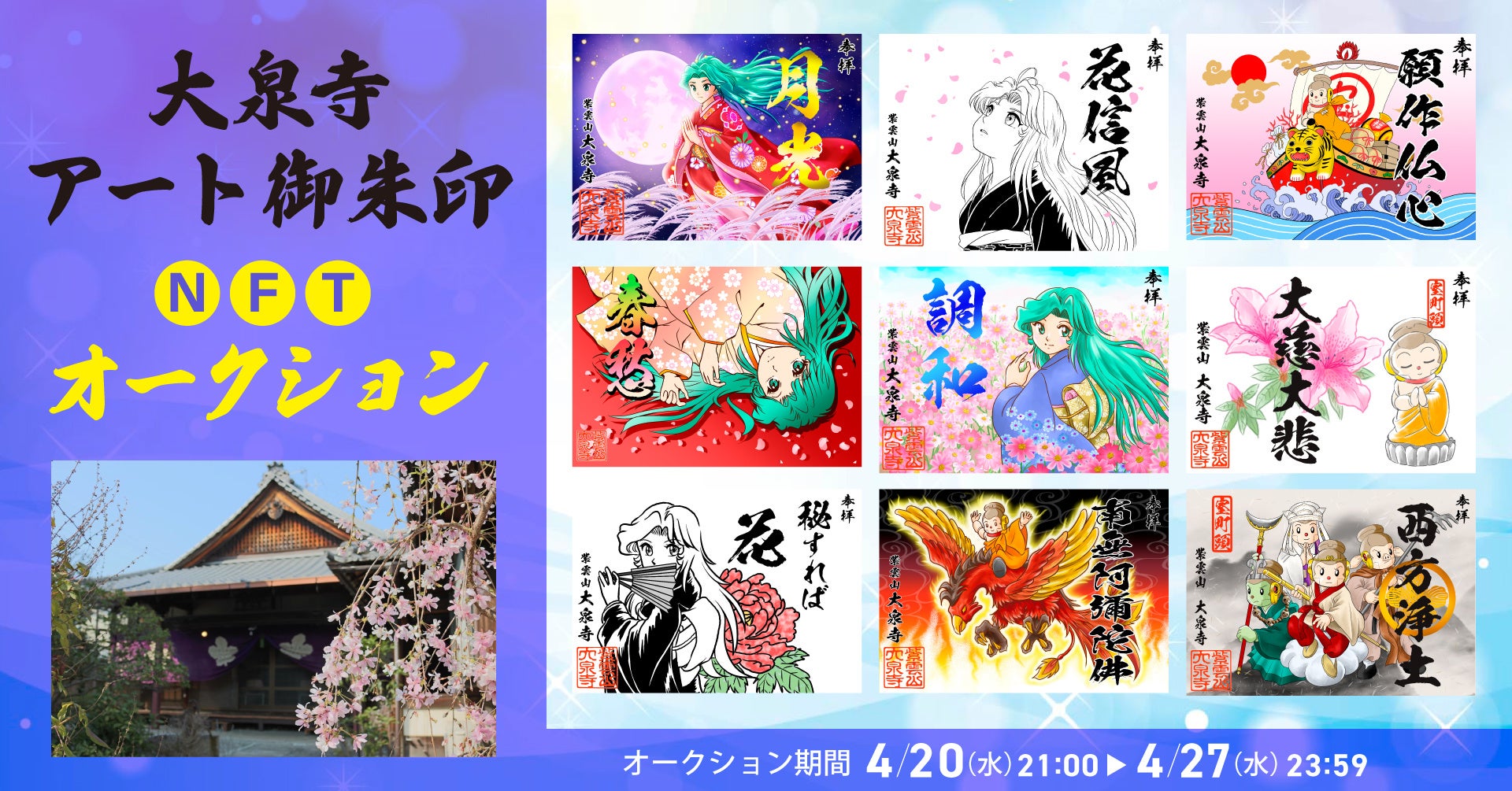 NFTマーケットのHEXA(ヘキサ)では、京都の紫雲山「大泉寺」のアート御朱印NFT を4/20(水)21時からオークション形式にて販売します。