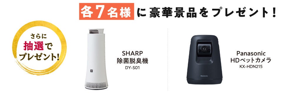 ご成約者さま全員 ・ミスタードーナツ ギフトチケット 200円 抽選 ・SHARP 除菌脱臭機 DY-SO1 7名様 ・Panasonic HDペットカメラ KX-HDN215 7名様 ※商品の機能に関するお問合せは各メーカーさまへお願いいたします。 ※カラーはお選びいただけません。 |