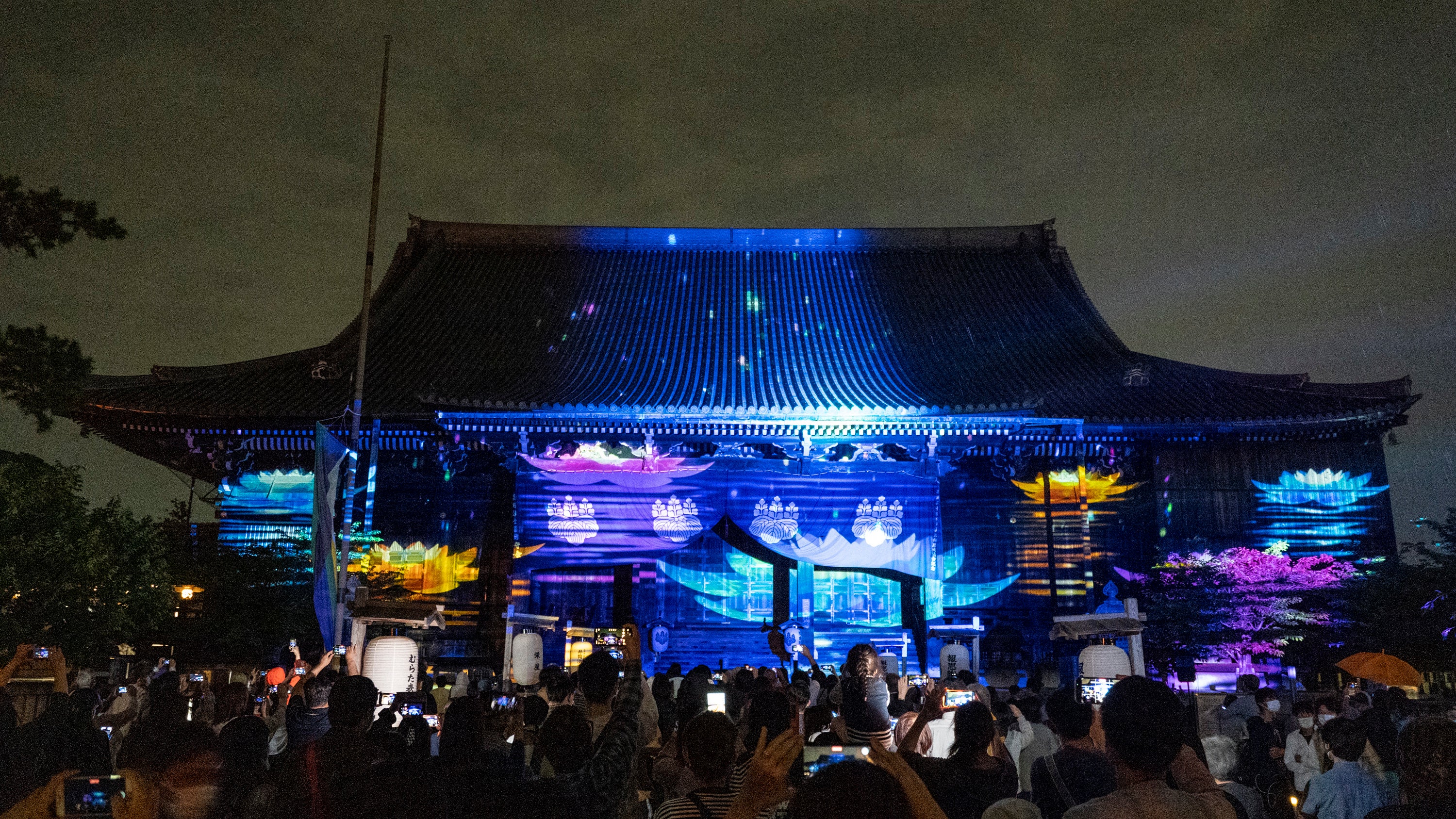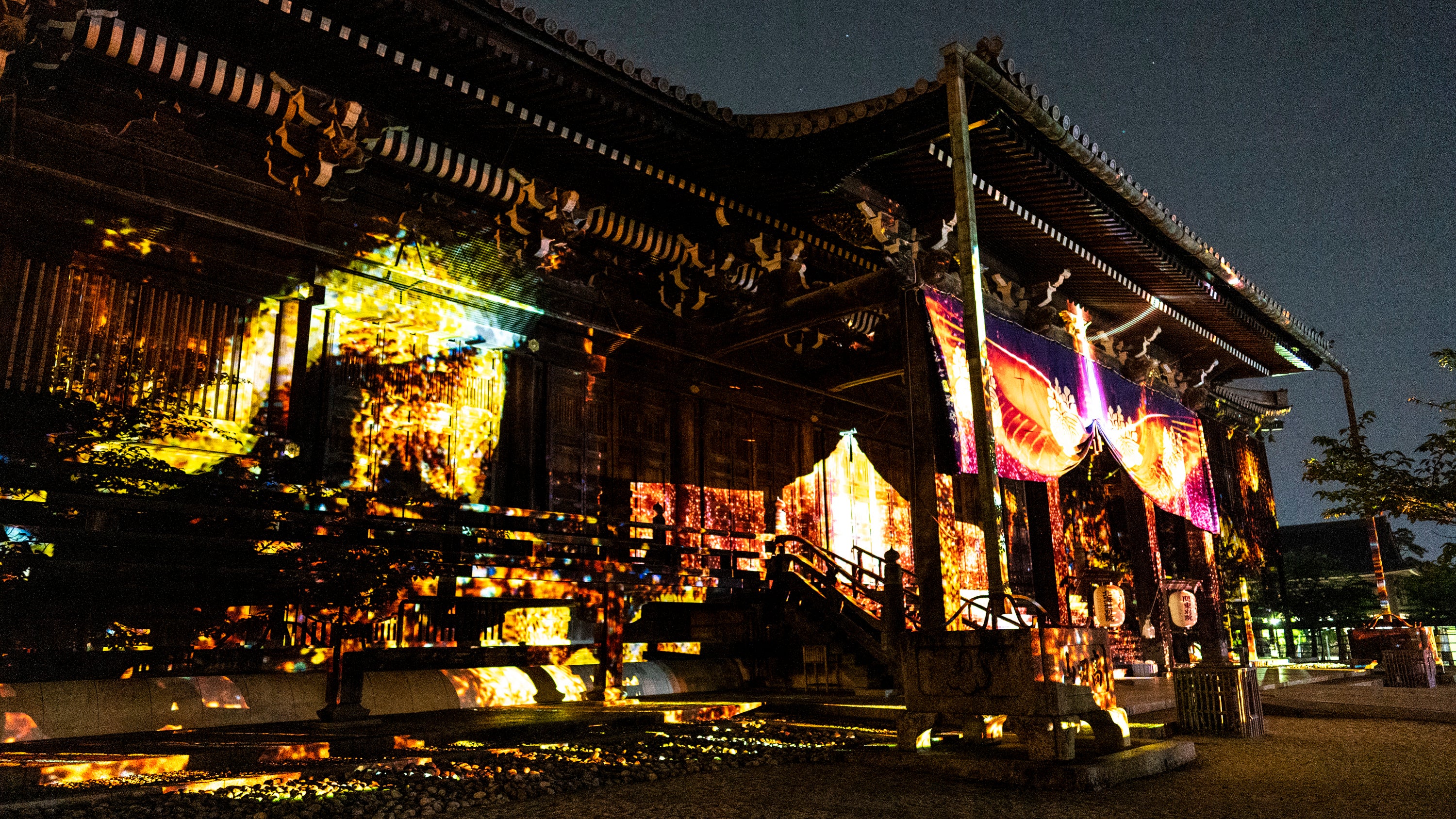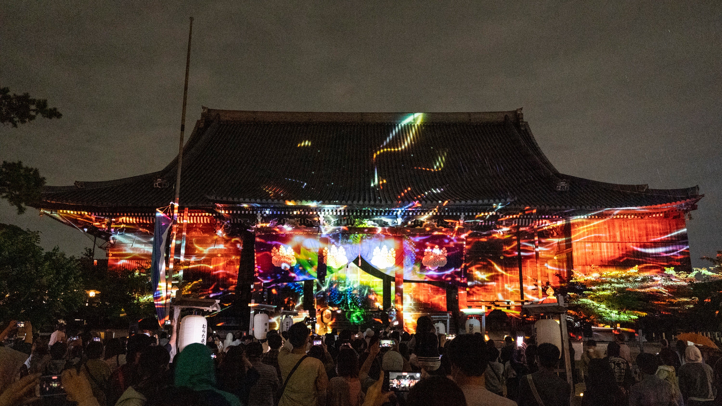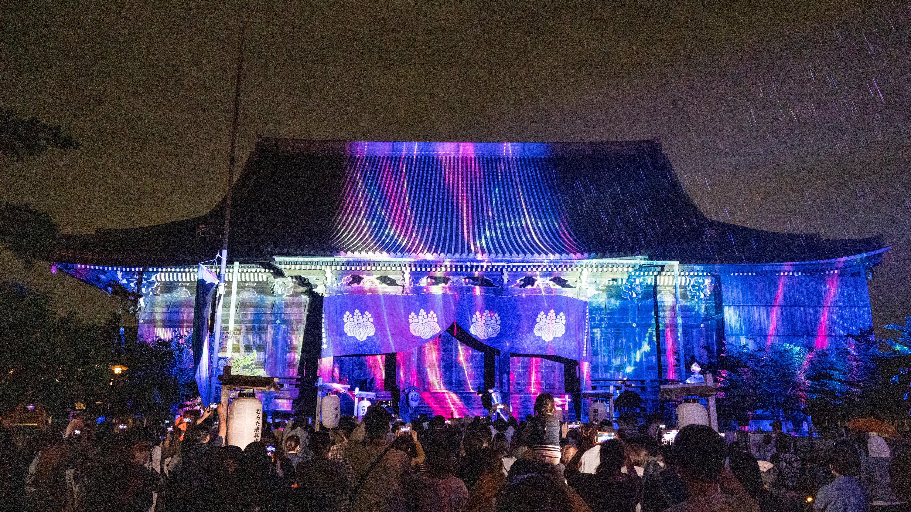 国宝木造建築物で全国5位の大きさを誇る御影堂で史上初となる一般公開プロジェクションマッピングとして、たくさんの方にご来場いただきました。