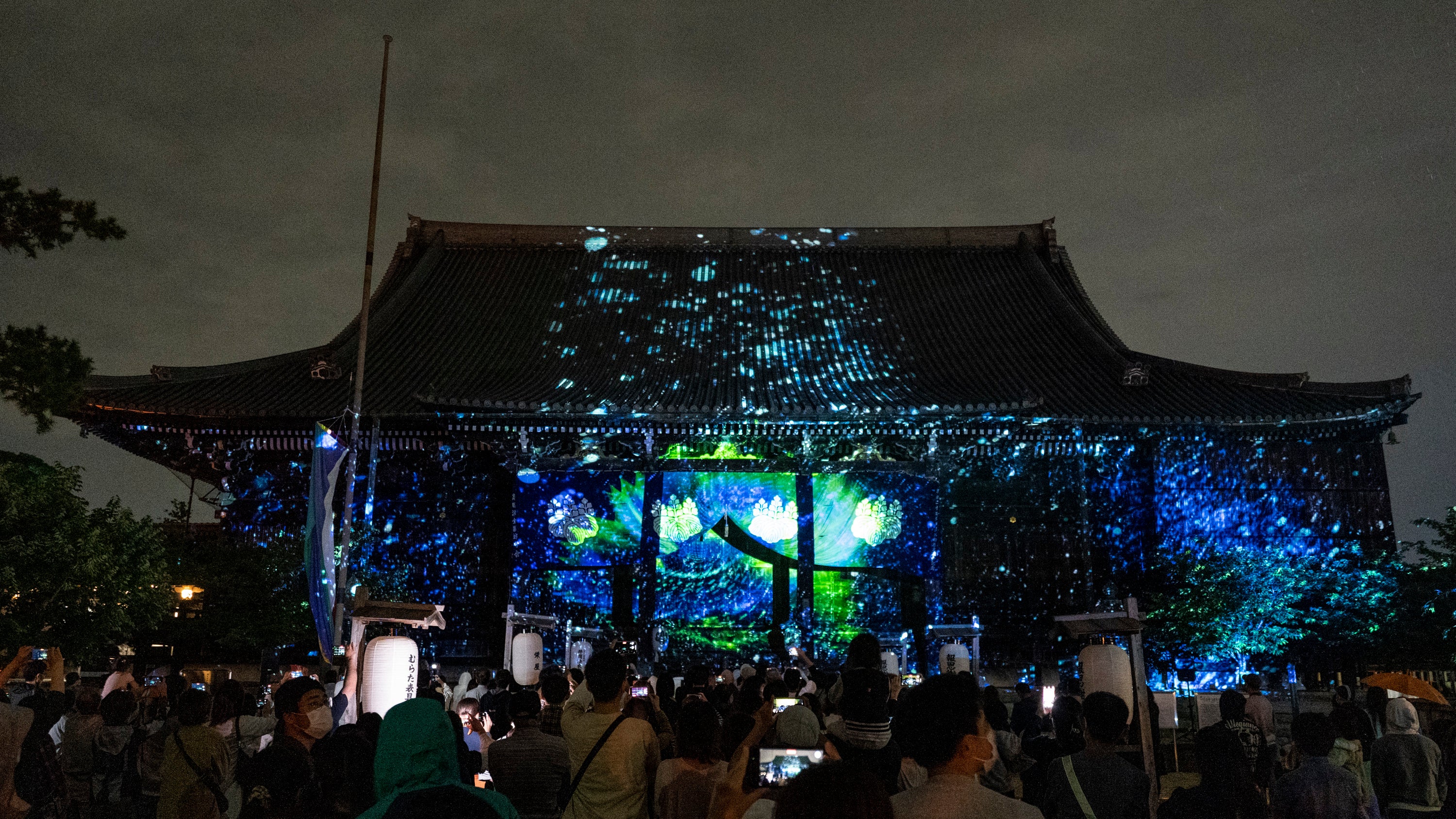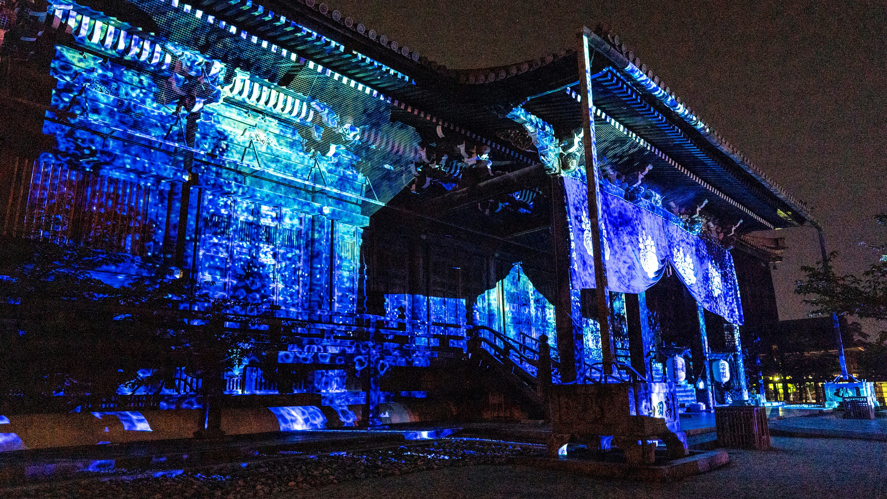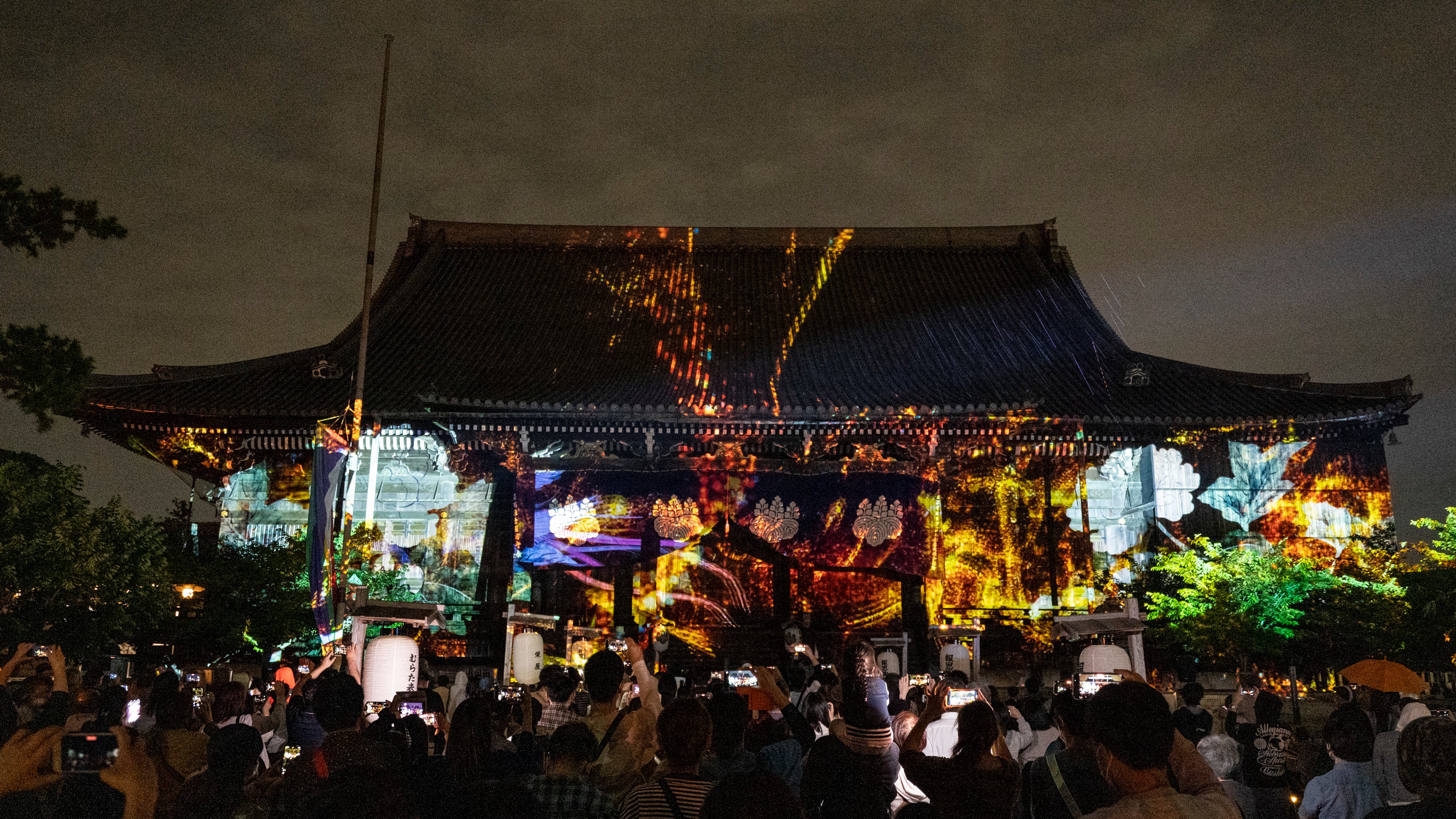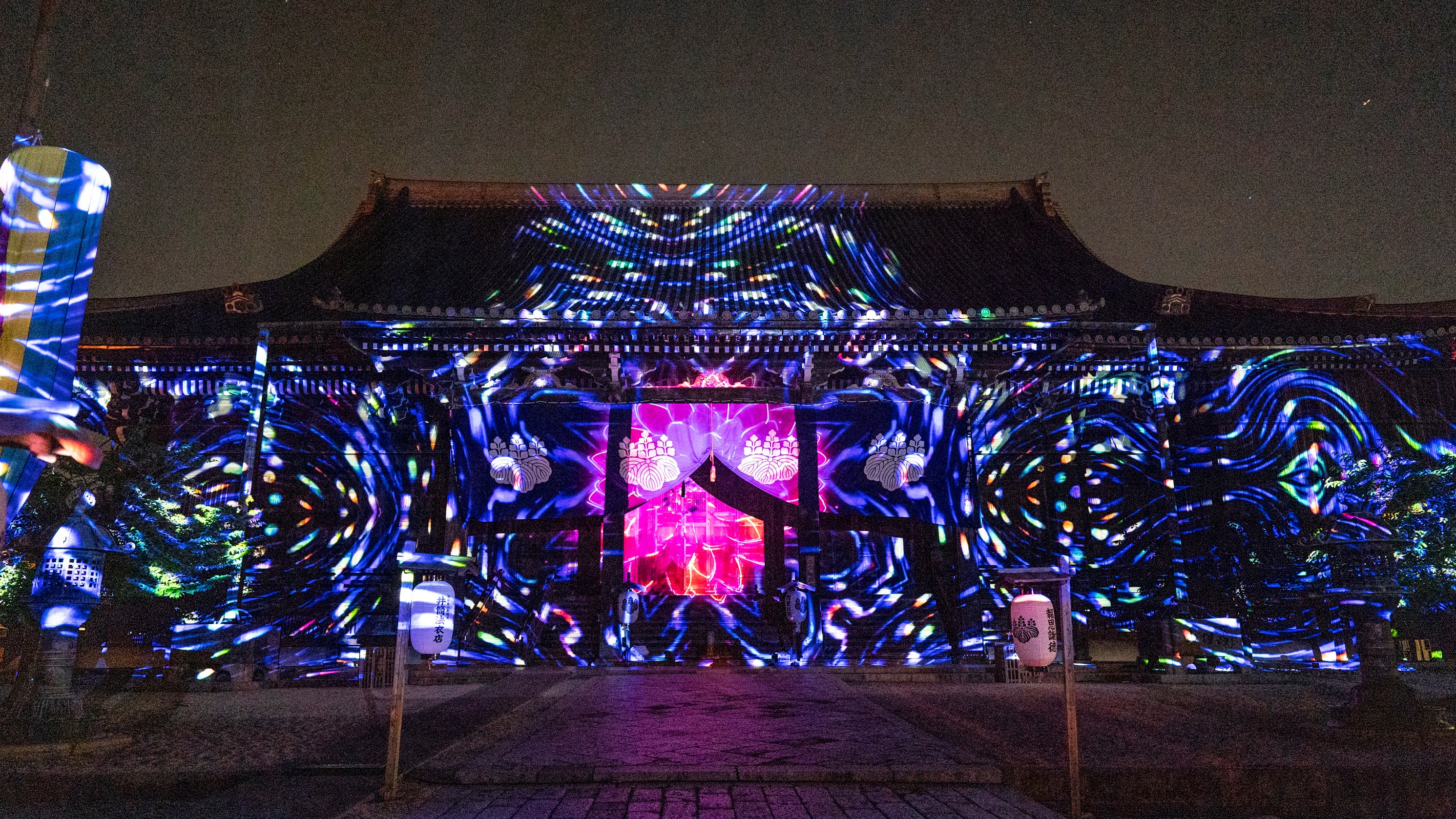 国宝木造建築物で全国5位の大きさを誇る御影堂で史上初となる一般公開プロジェクションマッピングとして、たくさんの方にご来場いただきました。