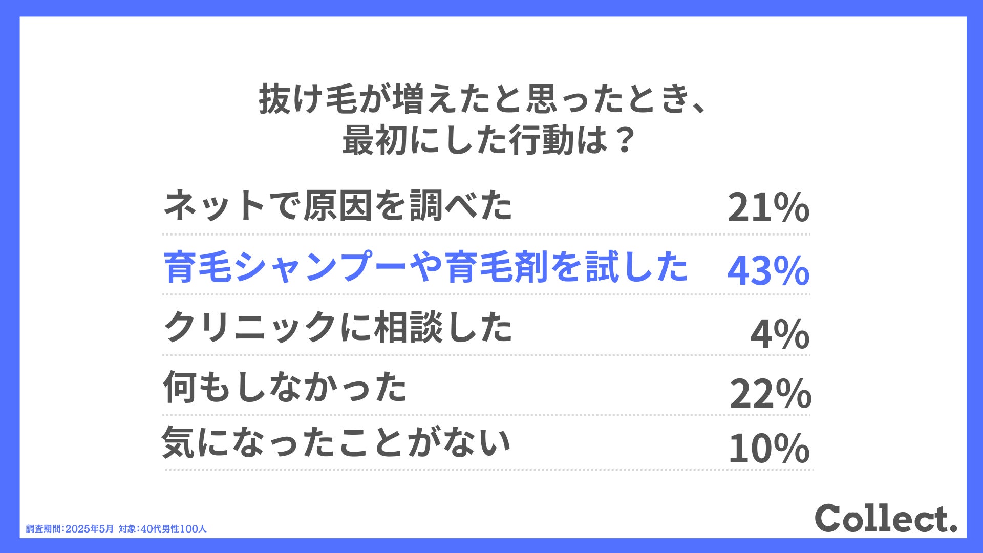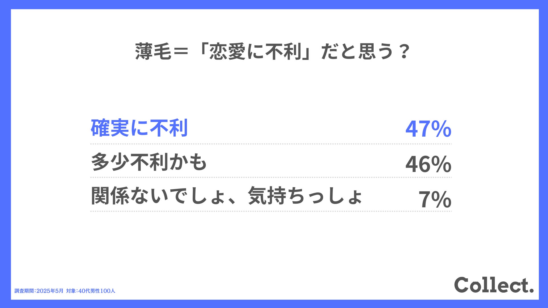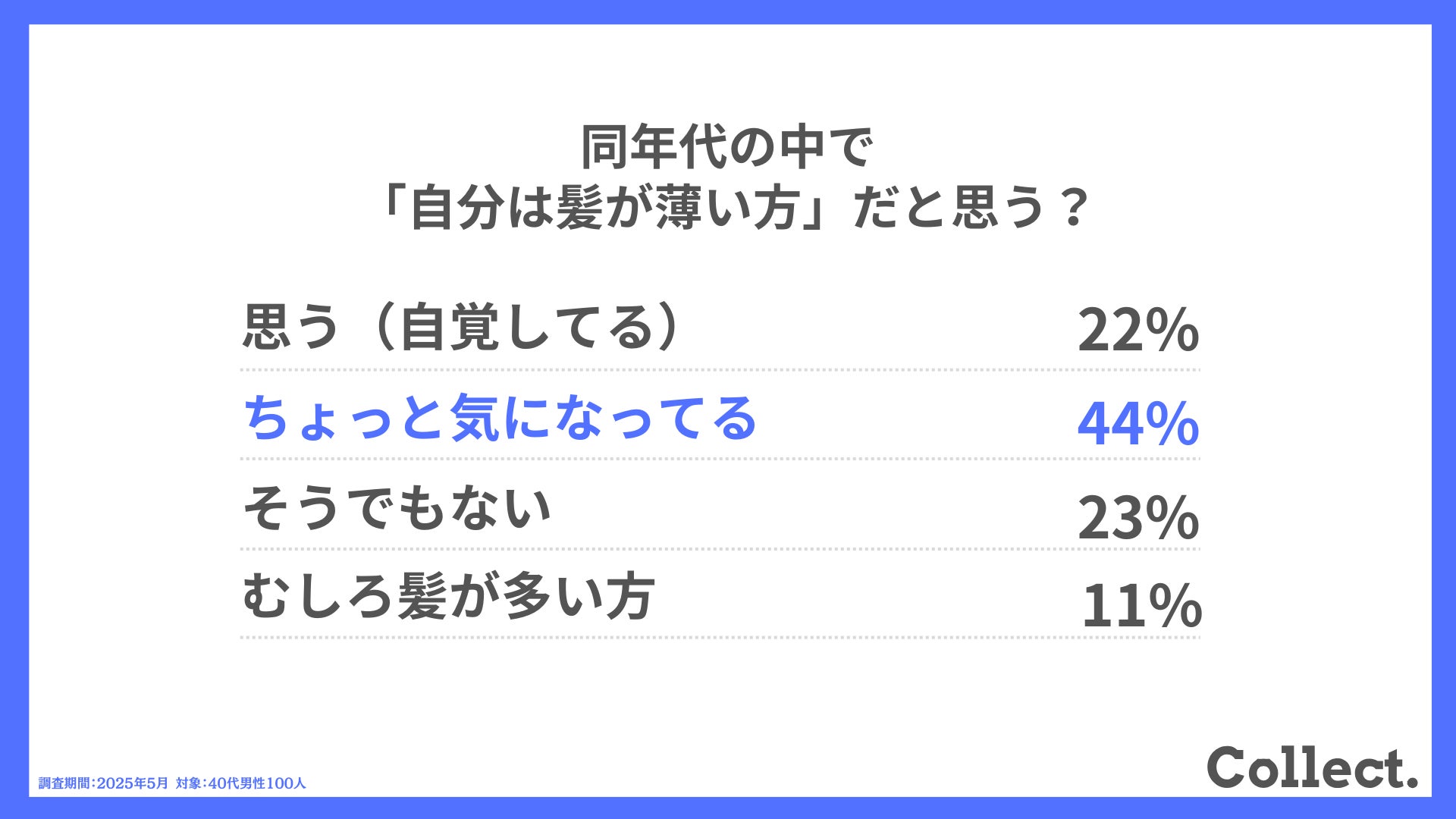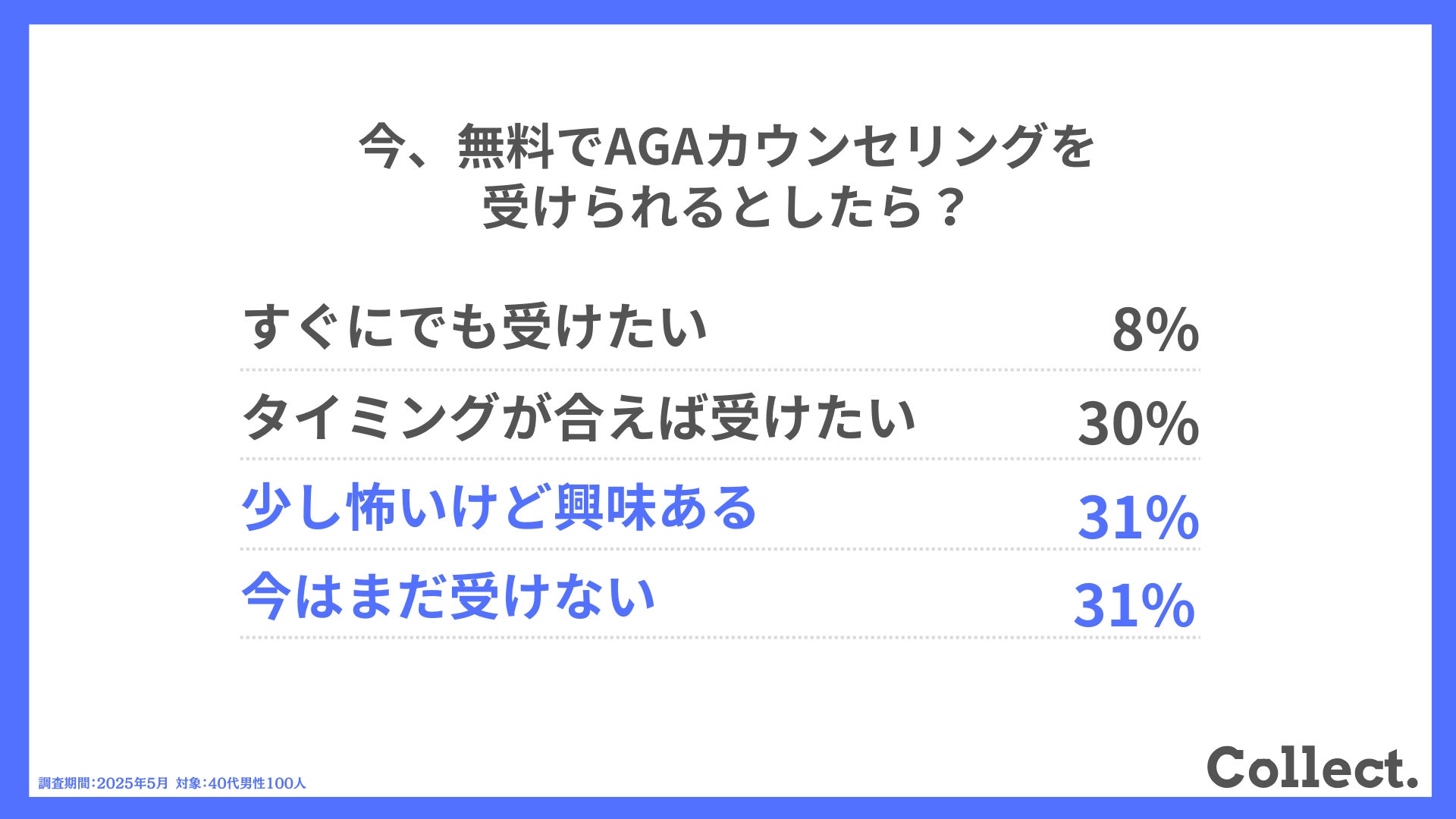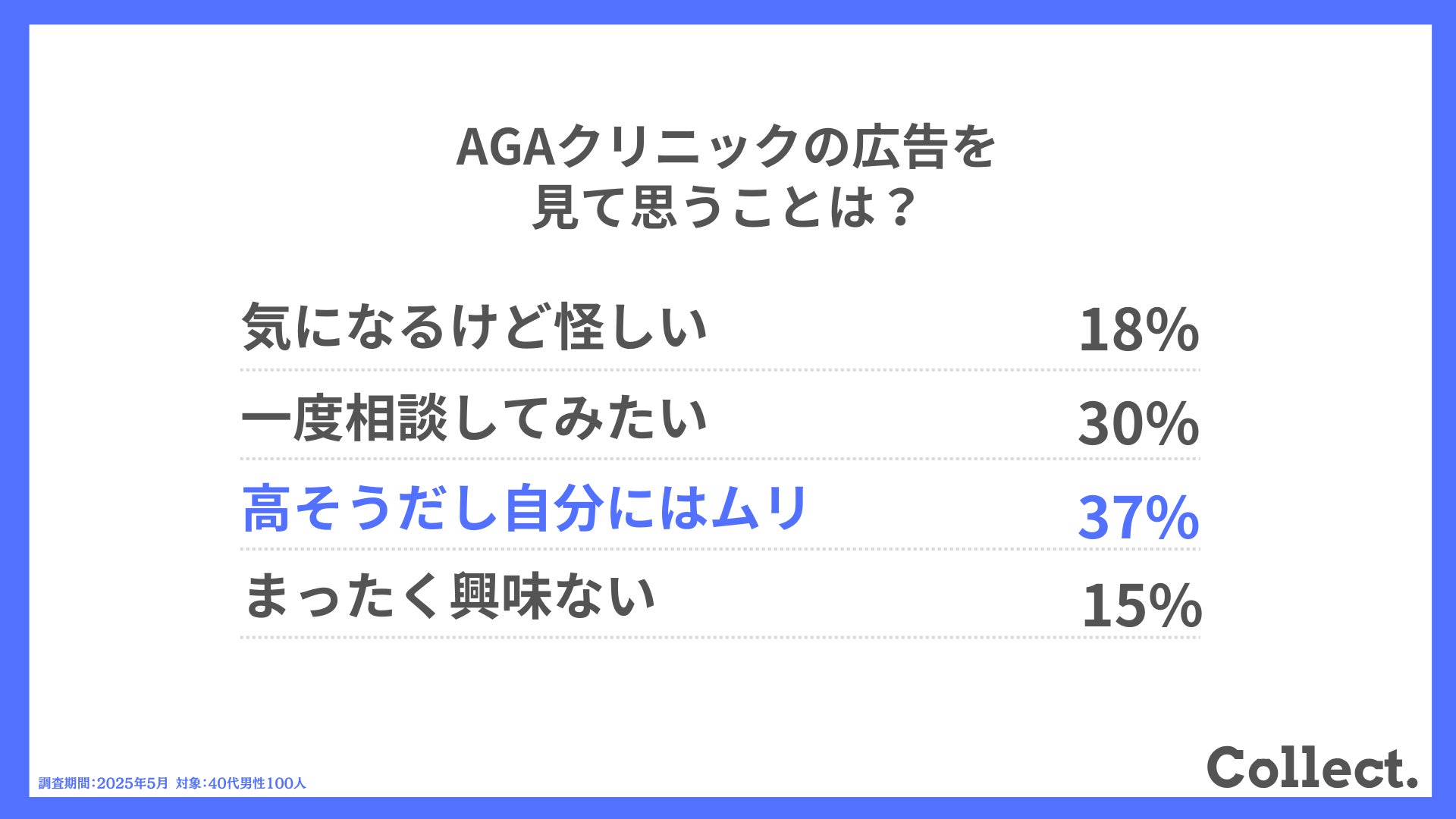 本アンケート結果や画像をご利用いただく際は、引用元として「Collect.(コレクト)URL(https://www.dm-s.co.jp/collect/aga-list/)」へのリンク設置をお願いいたします。