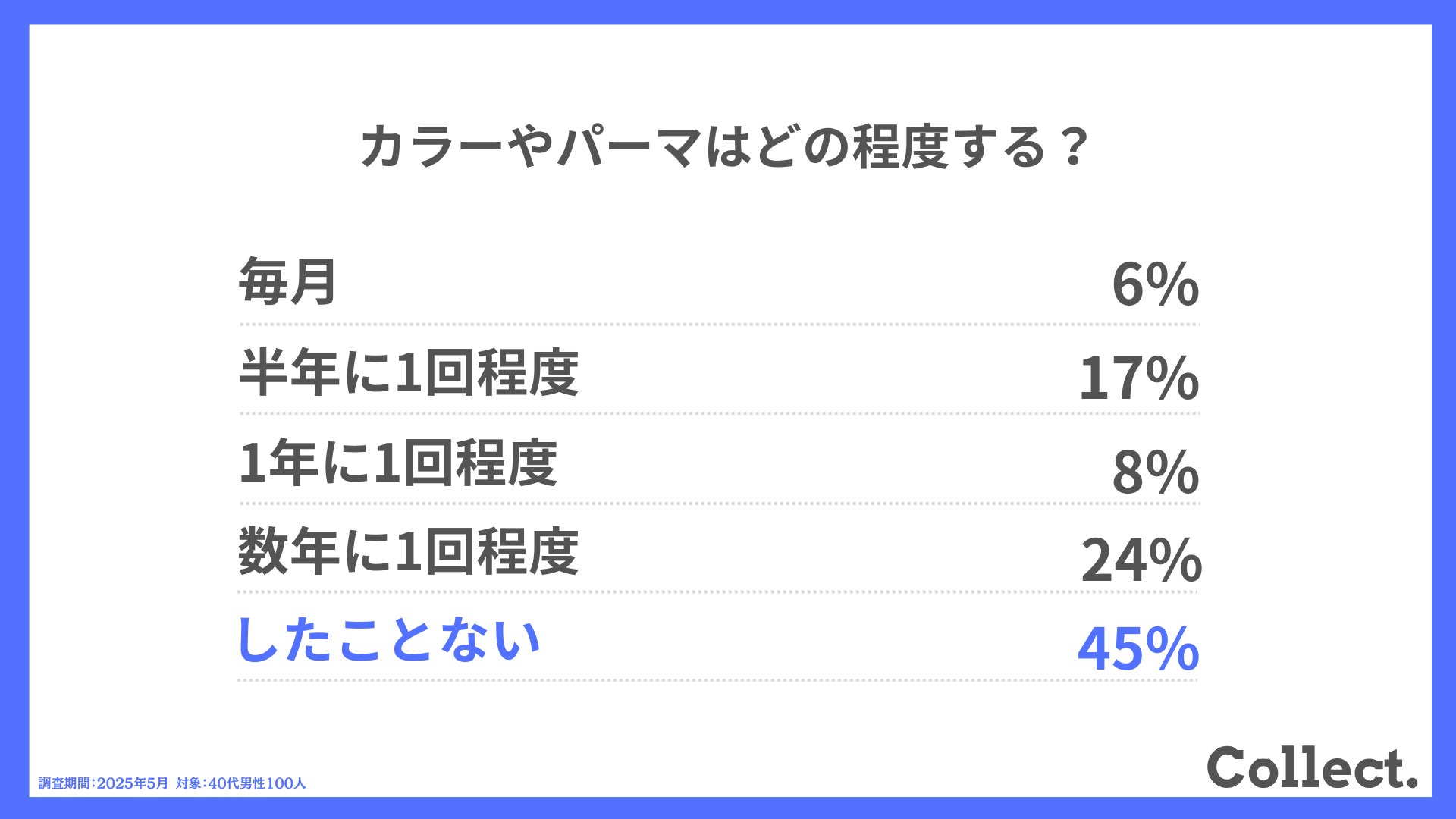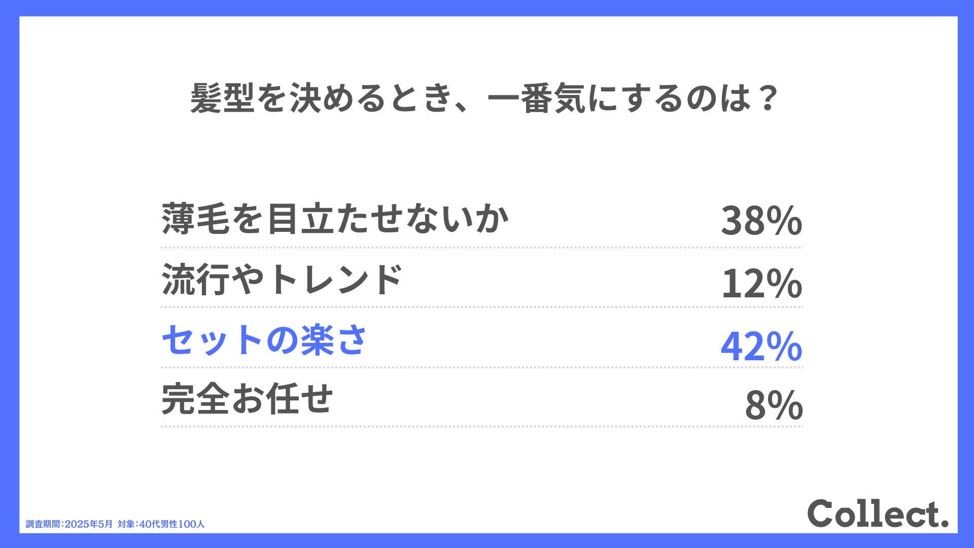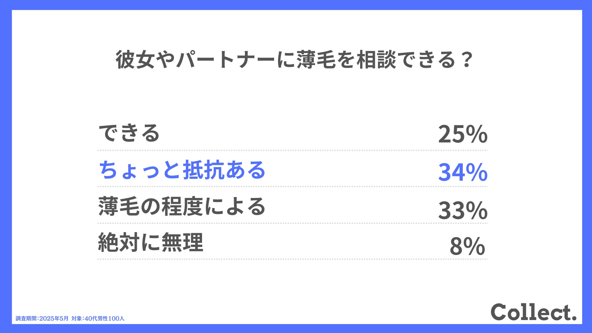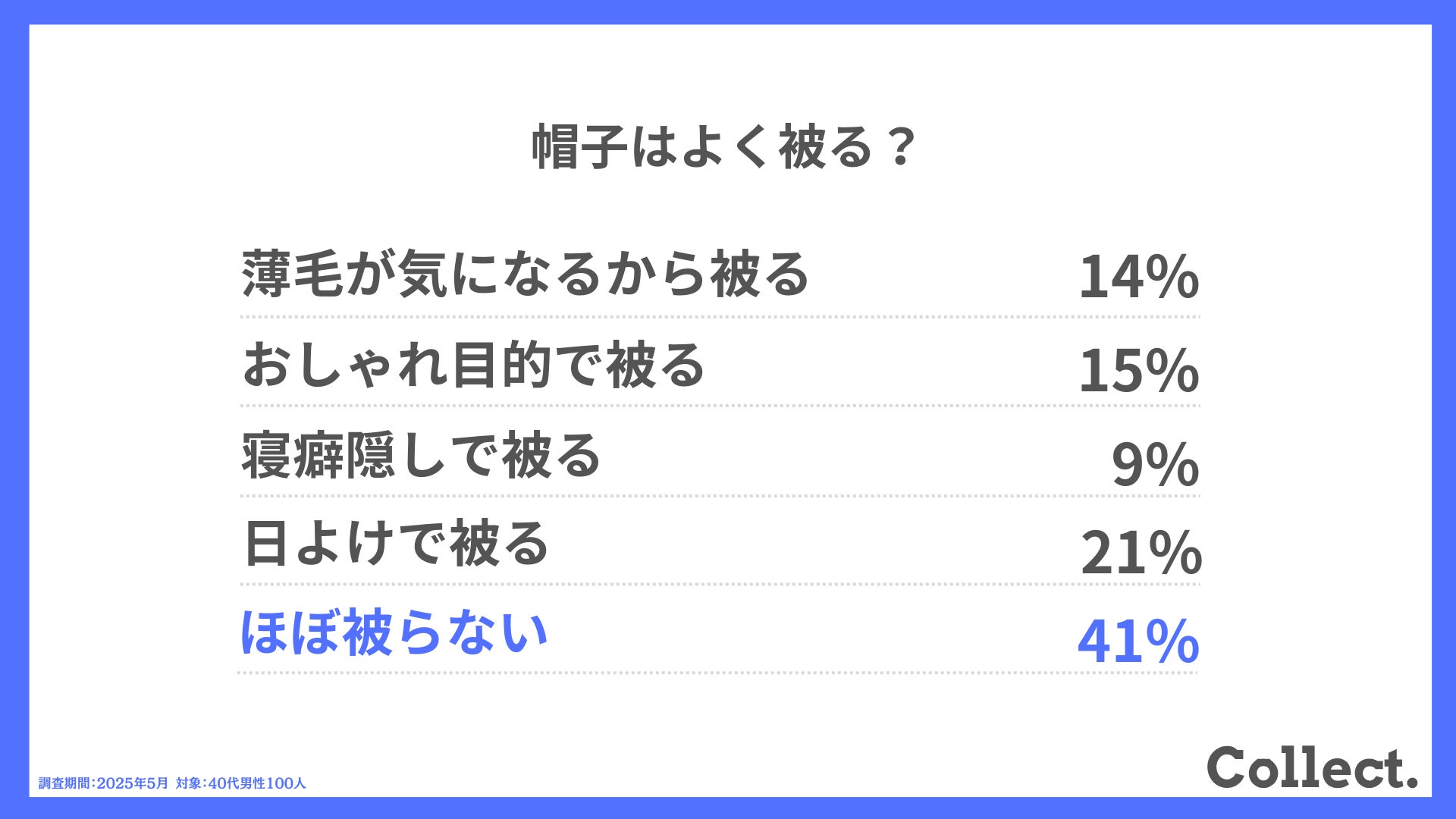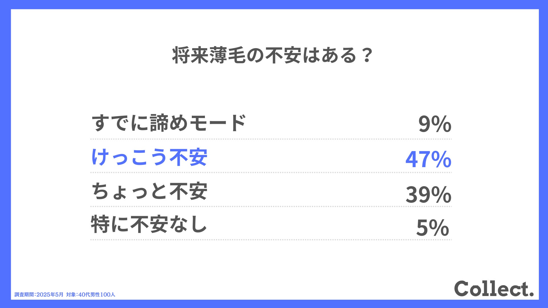 本アンケート結果や画像をご利用いただく際は、引用元として「Collect.(コレクト)URL(https://www.dm-s.co.jp/collect/aga-list/)」へのリンク設置をお願いいたします。