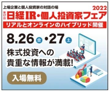 当社は、2022年8月26日(金)・27日(土)に東京ビックサイトで開催される「第17回日経IR・個人投資家フェア2022」に出展いたします。