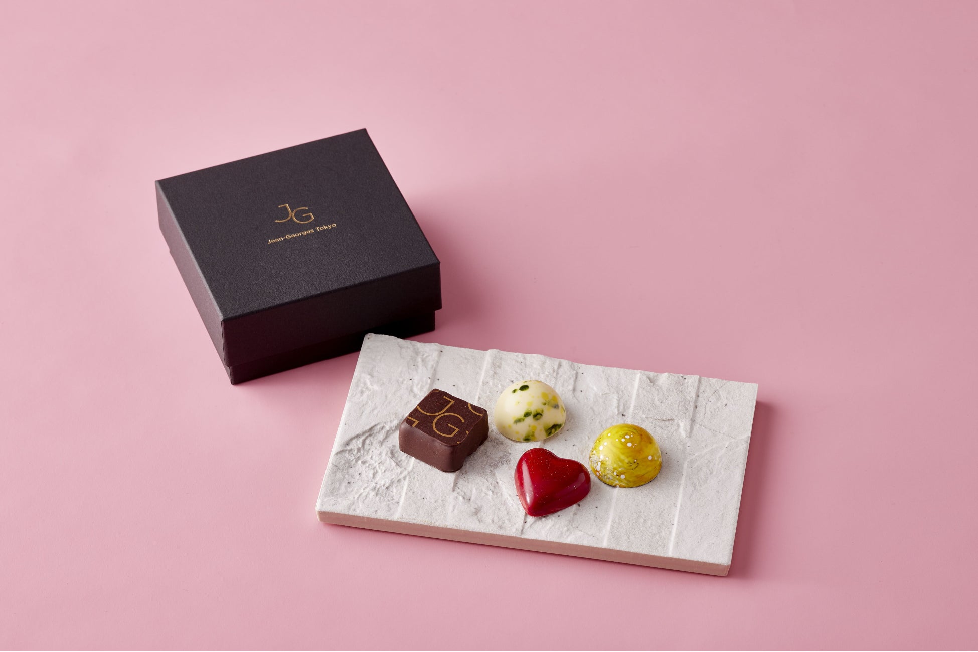 スパイスやハーブ、花の香りをテーマにした、風味豊かなチョコレートボックス。ラズベリー×ラベンダー、ライム×カルダモン、マンゴー×バジル、プラリネ×山椒の4種を詰め合わせました。ジャン・ジョルジュらしい洗練されたマリアージュをお楽しみください。