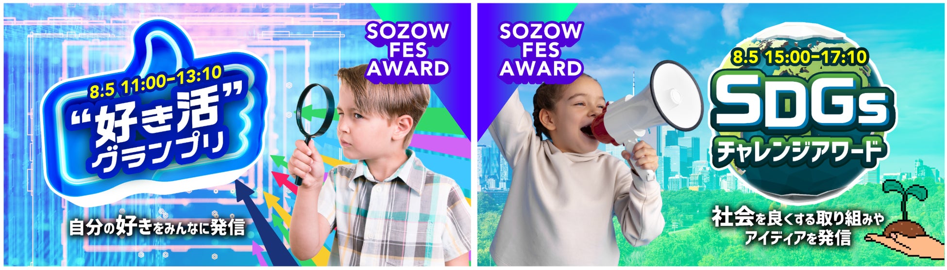 子どもたちの熱中していることを発信する「好き活グランプリ」、地球の未来やSDGsの取り組みについて発表する「SDGsチャレンジアワード」を開催し、テレビ朝日の公式YouTubeチャンネル「動画、はじめてみました」にて生配信します。また、『新世界 メタバースTV!!』にて大会の様子を紹介予定です。