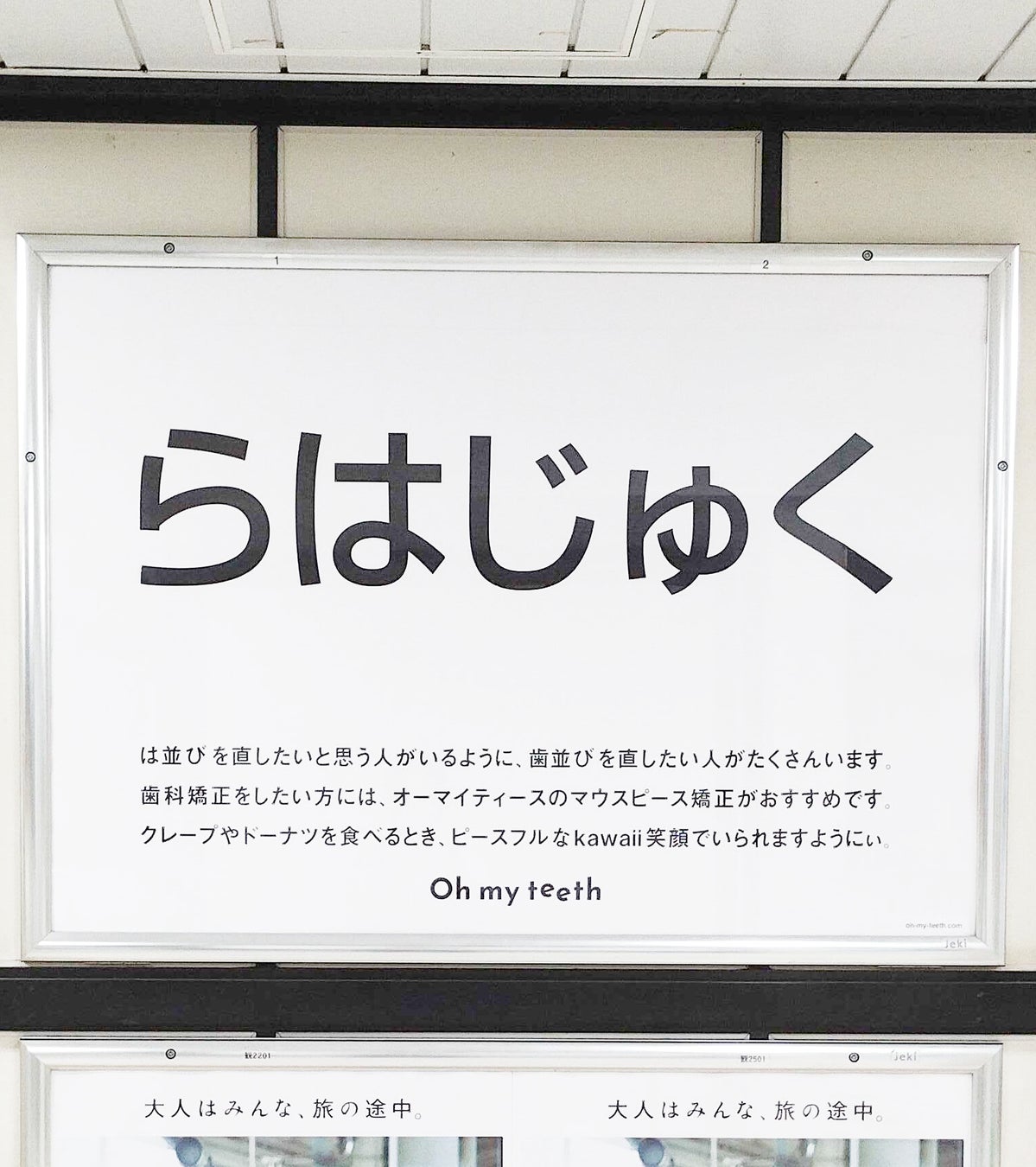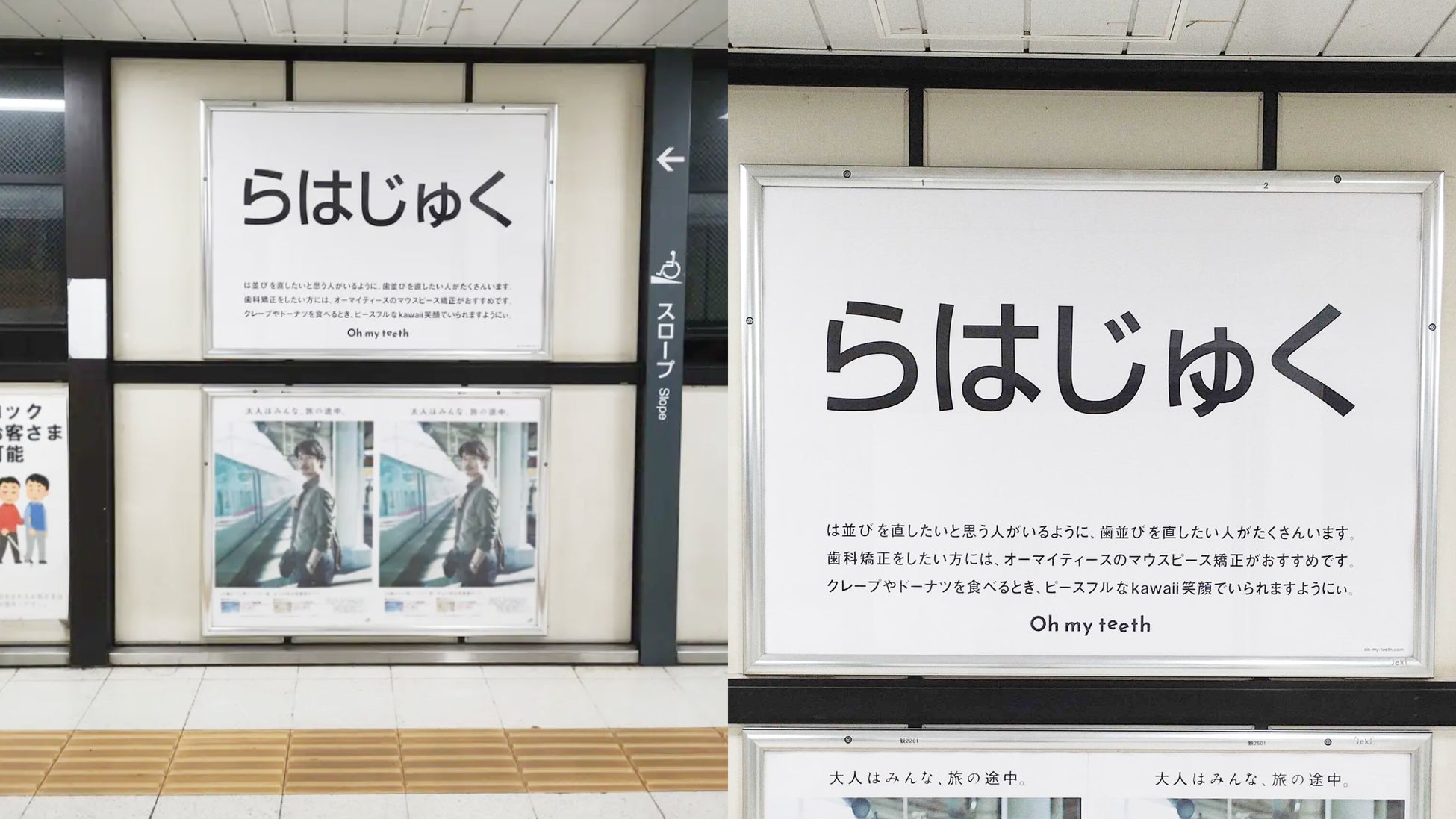 原宿駅が「らはじゅく駅」に!?…は並びが気になるポスターが「はのつく駅」で出現!Oh my teethの「”は並び”を考える月間」
