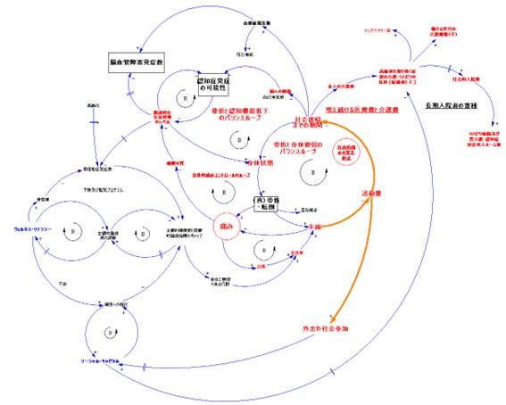 【システム図:高齢者が介護となる原因と介護を取り巻く実態】