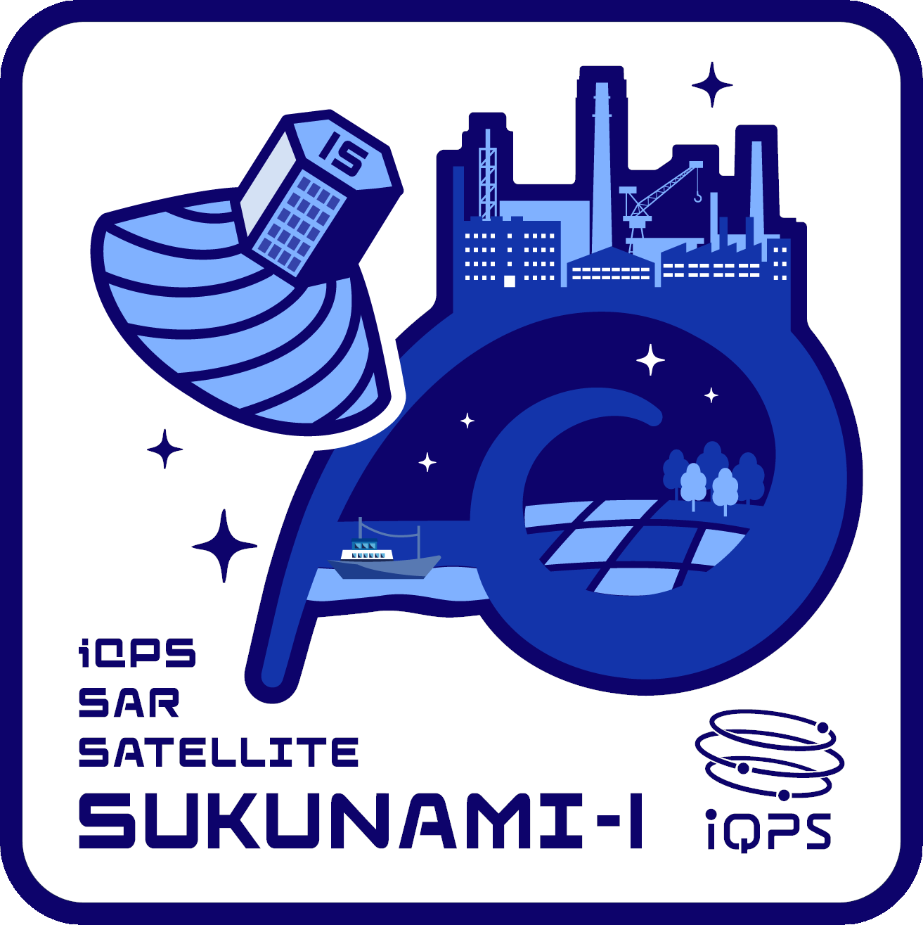ミッションマーク:QPS研究所のカンパニーカラーであるブルーを基調とし、愛称のスクナミをイメージする「国造り」の中でも技術を表す漁業や農業、工業地帯を表しています。また、共に国造りを行ったことから、ヤチホコのミッションマークとリンクしたデザインになっています。クシナダやヤチホコと同じく、傾斜軌道では経済活動が活発な大型都市圏が観測域に多く入ることになります。また、一目でどの衛星のマークか分かるように通算した衛星の数の数字を衛星の底部に入れています。