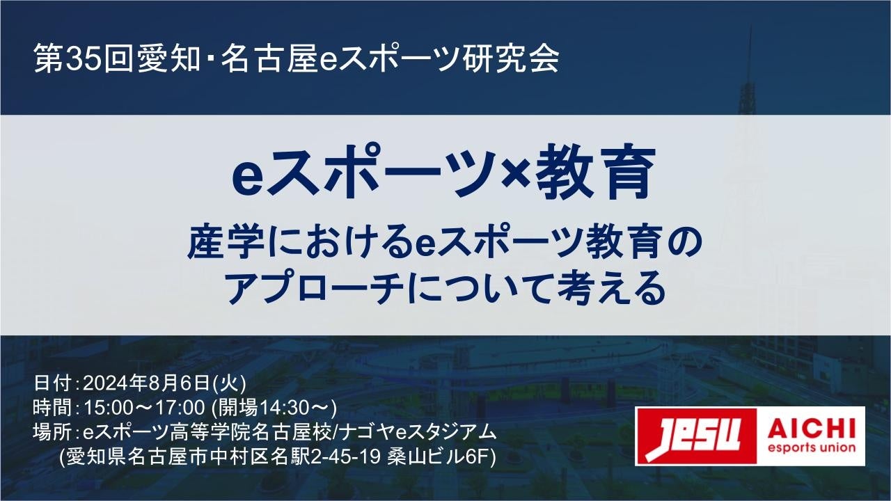 一般社団法人 愛知eスポーツ連合(JeSU愛知、所在地:愛知県名古屋市、代表:片桐正大)は2024年8月6日(火)、第35回愛知・名古屋eスポーツ研究会をeスポーツ高等学院名古屋校 / ナゴヤeスタジアム(所在地:愛知県名古屋市中村区名駅2-45-19 桑山ビル6F)にて開催いたします。