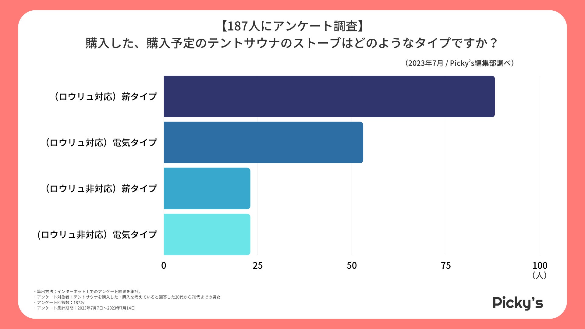 スチームサウナやアロマを楽しむことができる「ロウリュ対応タイプ」が人気のようです。なかでも、アウトドアでの利用時に電源のことを気にしなくて良い「薪タイプ」が1位という結果になりました。