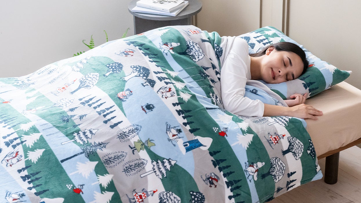かわいいムーミン柄のあったか掛けカバー、フランネル素材の柔らかな肌触りと暖かさ◎