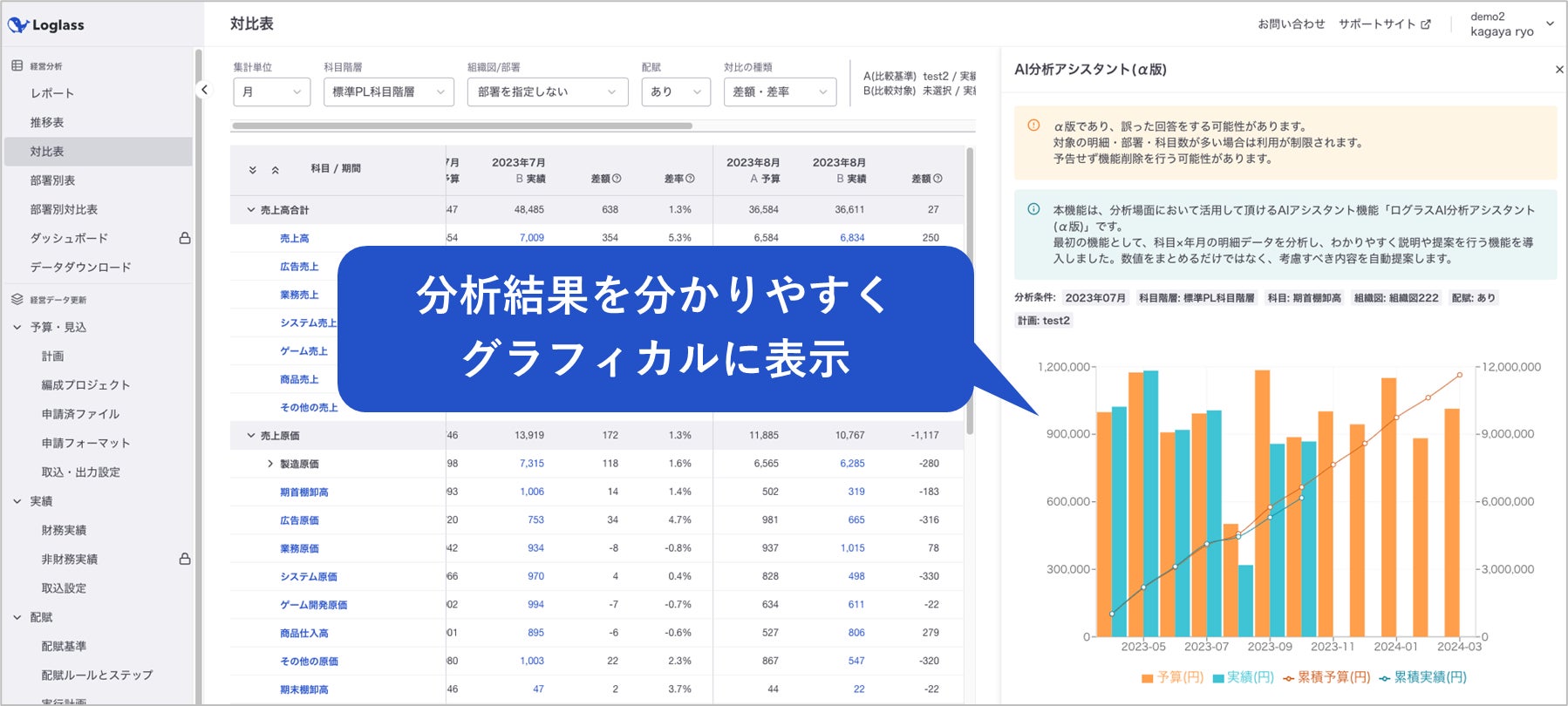 経営管理クラウド「Loglass 経営管理」が「AI分析アシスタント(β版)」を1月30日(火)より提供開始