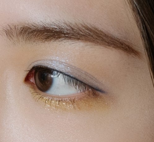 トレンドのブルーを取り入れたバイカラーメイクで休日を楽しもう!透け感のあるブルーで透明感UP、下まぶたのイエロー+ラメで遊びごころをプラス。