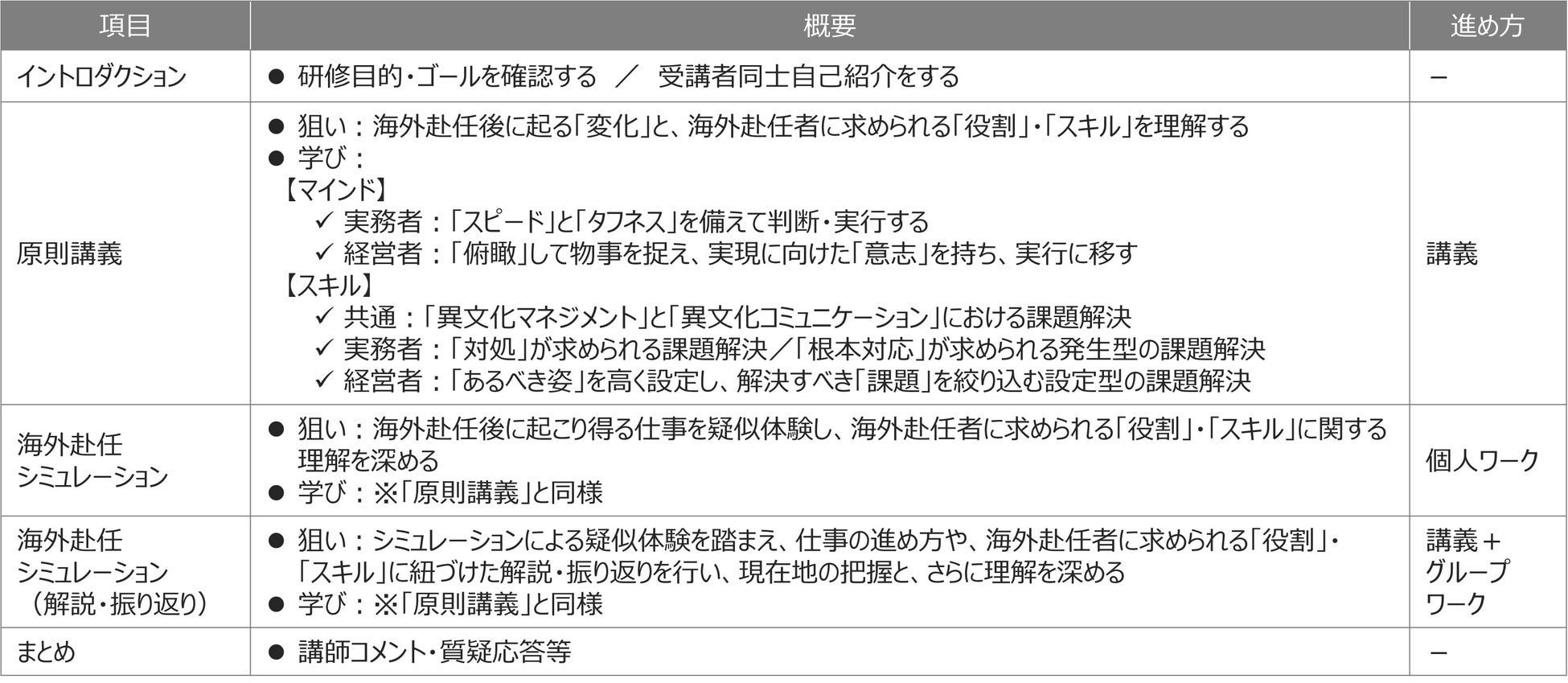 ◆対象:海外赴任未経験者(海外トレーニー経験者を含む)