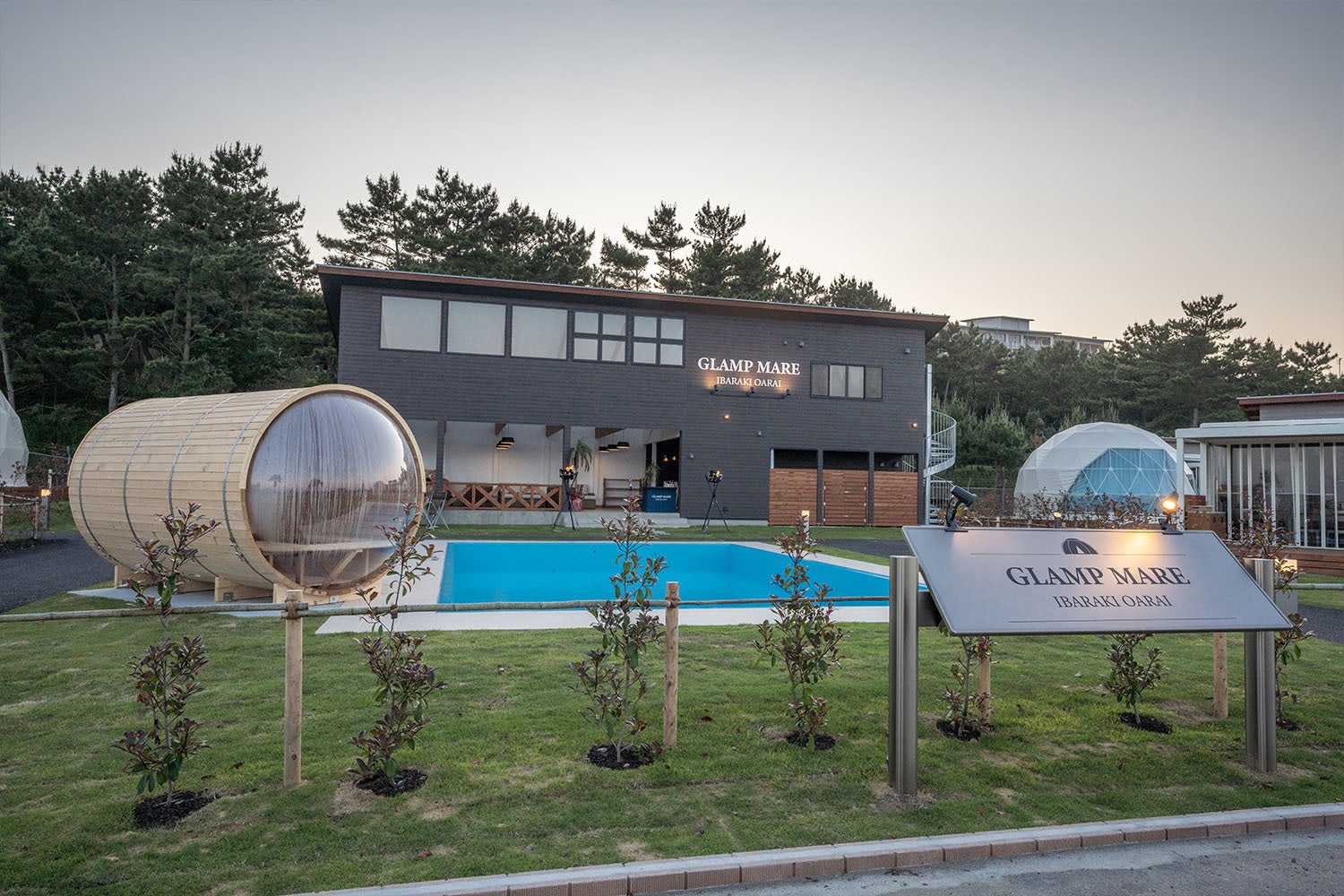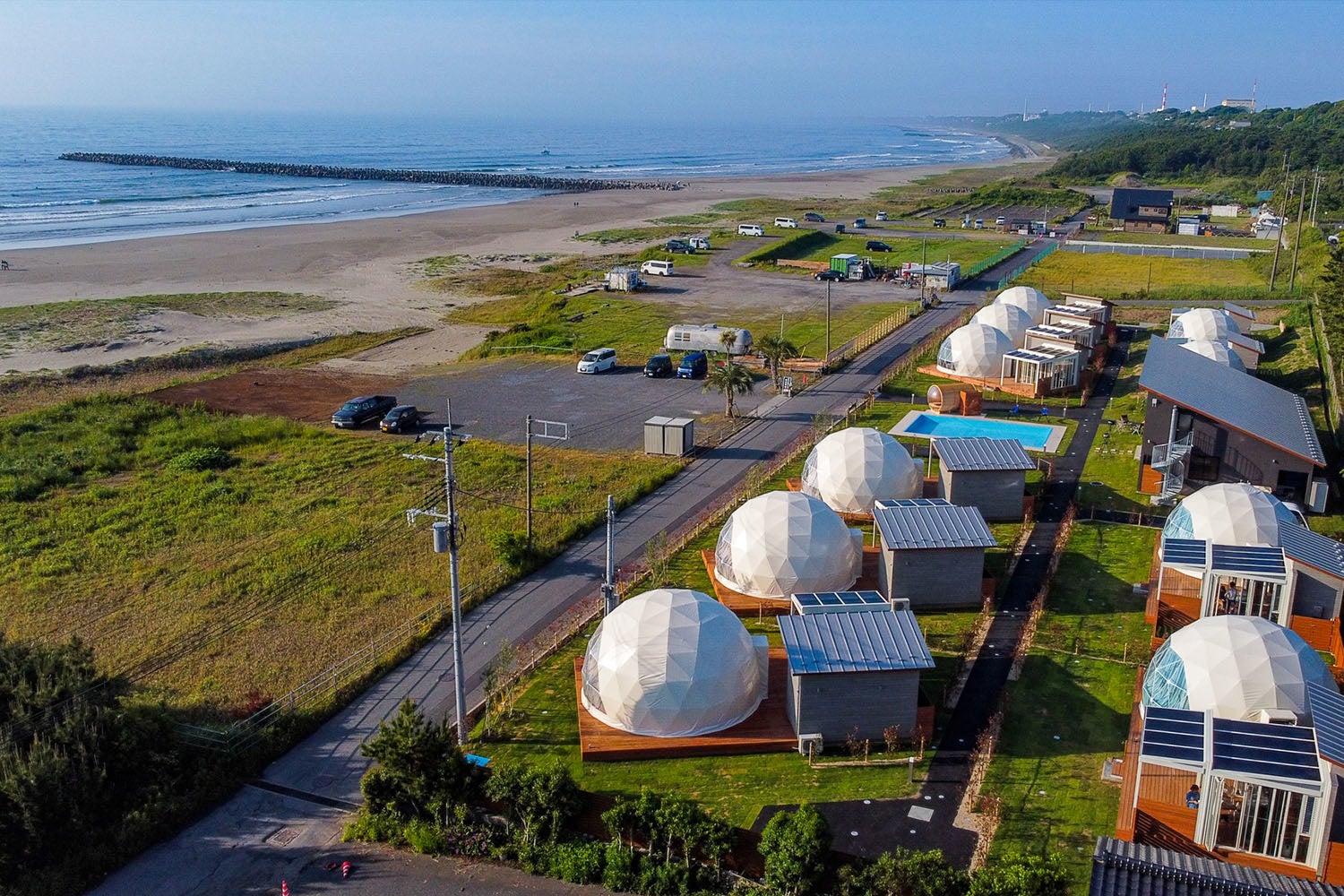茨城県大洗市に誕生した、180度パノラマの太平洋を見渡すオーシャングランピングを満喫する高規格グランピング施設。プライベートを大切にした1棟独立型のドームテントを全10棟配置、うち4棟は専用ドッグラン付きで愛犬同伴可能。共有プールやバレルサウナ、貸切温泉に無料のドリンクサービスもご用意し、非日常の優雅なグランピングSTAYを安心・快適にお過ごし頂けます。