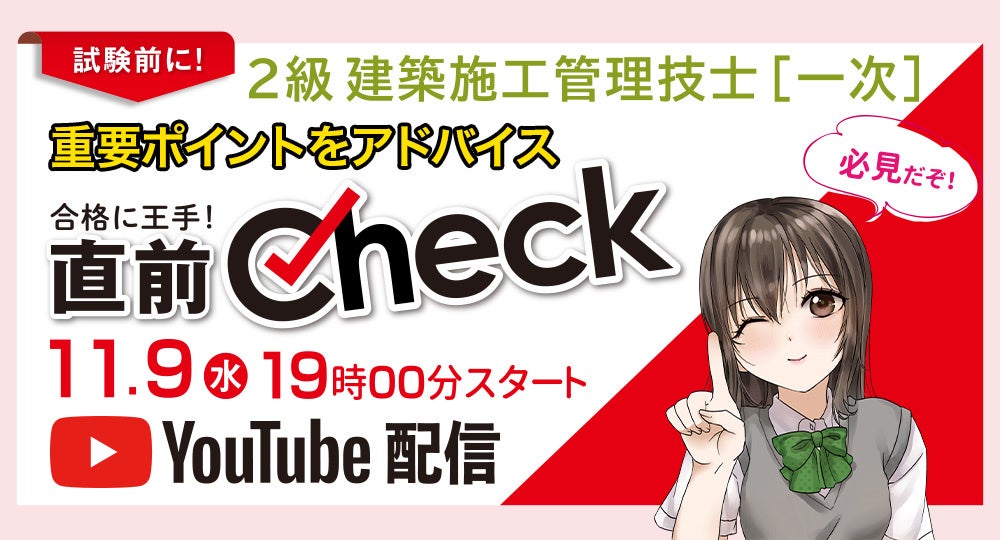 【2級建築施工管理技士 一次検定】11月9日19:00~ YouTube配信!試験直前 重要ポイントアドバイス